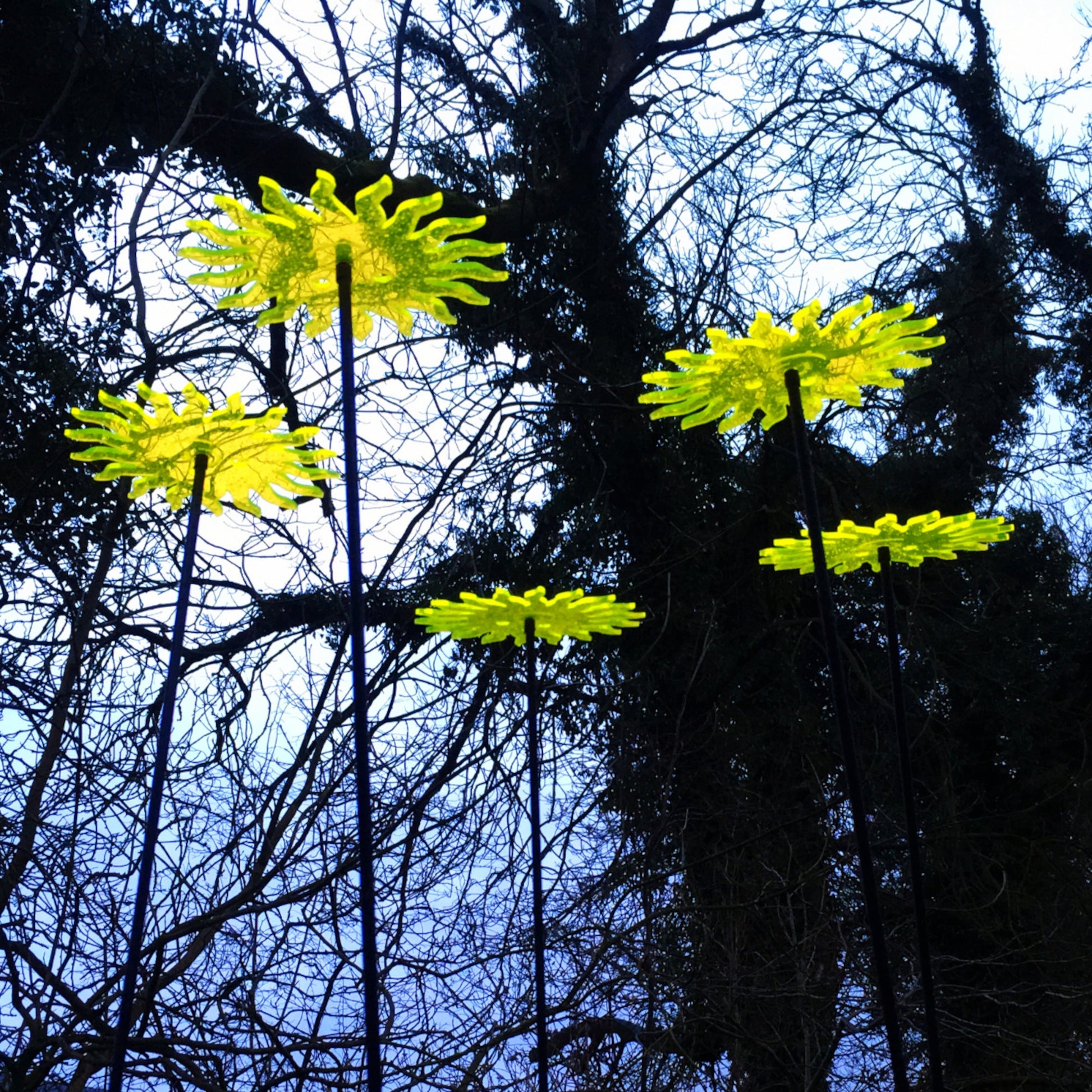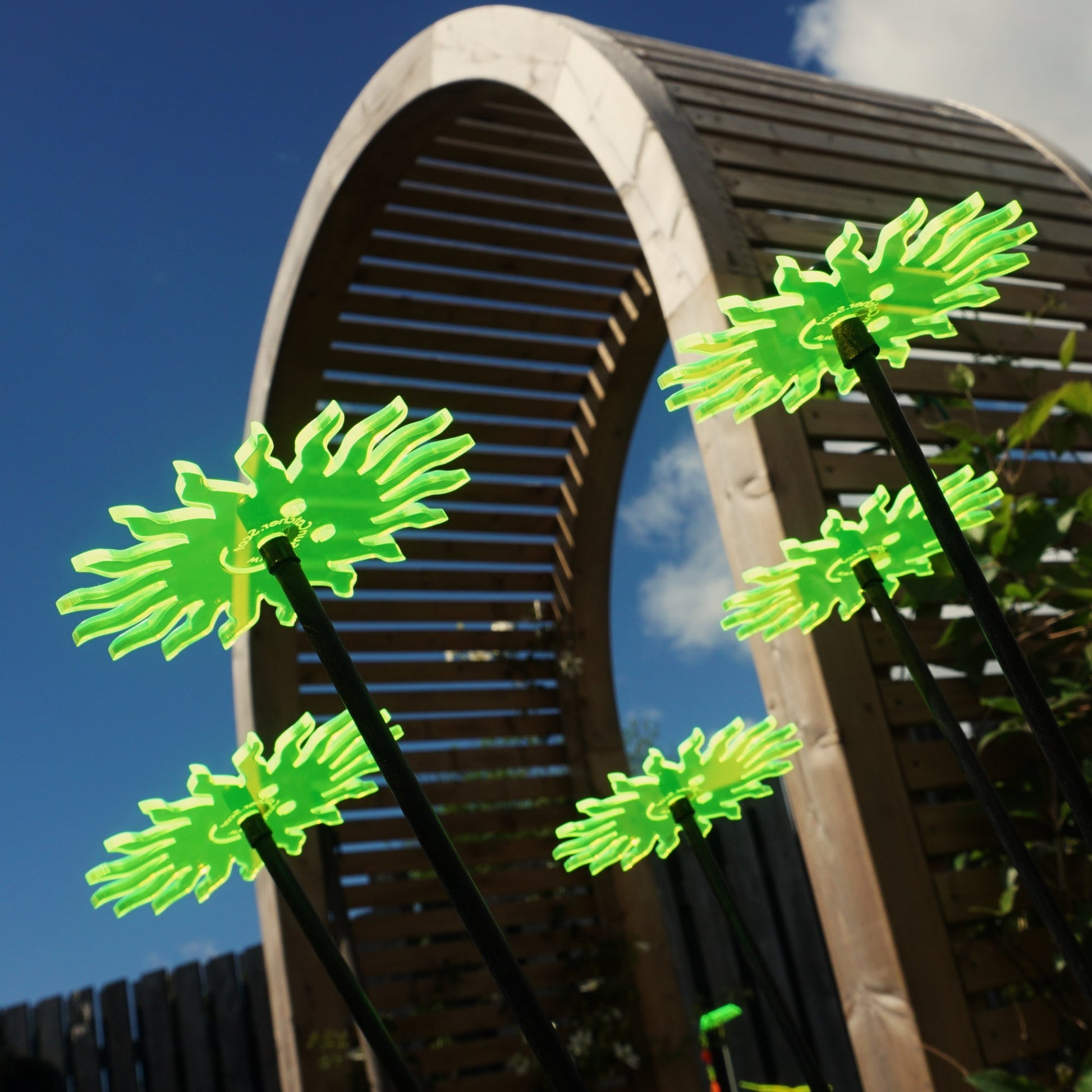 SunCatcher transform short wave spectral light we cannot see into long wave visible light. Accordingly, they are at their brightest, when there is less visible light around us. In the early hours as well as in the late hours of the day or when the sun is hiding behind clouds they will gather the light we cannot see and bring it back to us the brightest red, green, yellow orange and blue, just when we miss it most. SunCatcher work all year long and do not need any battery or power supply. Just a little bit of daylight is enough to start them glow.
