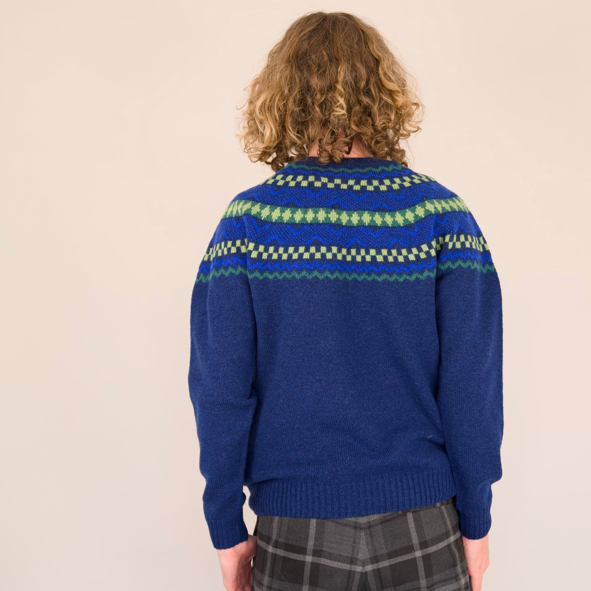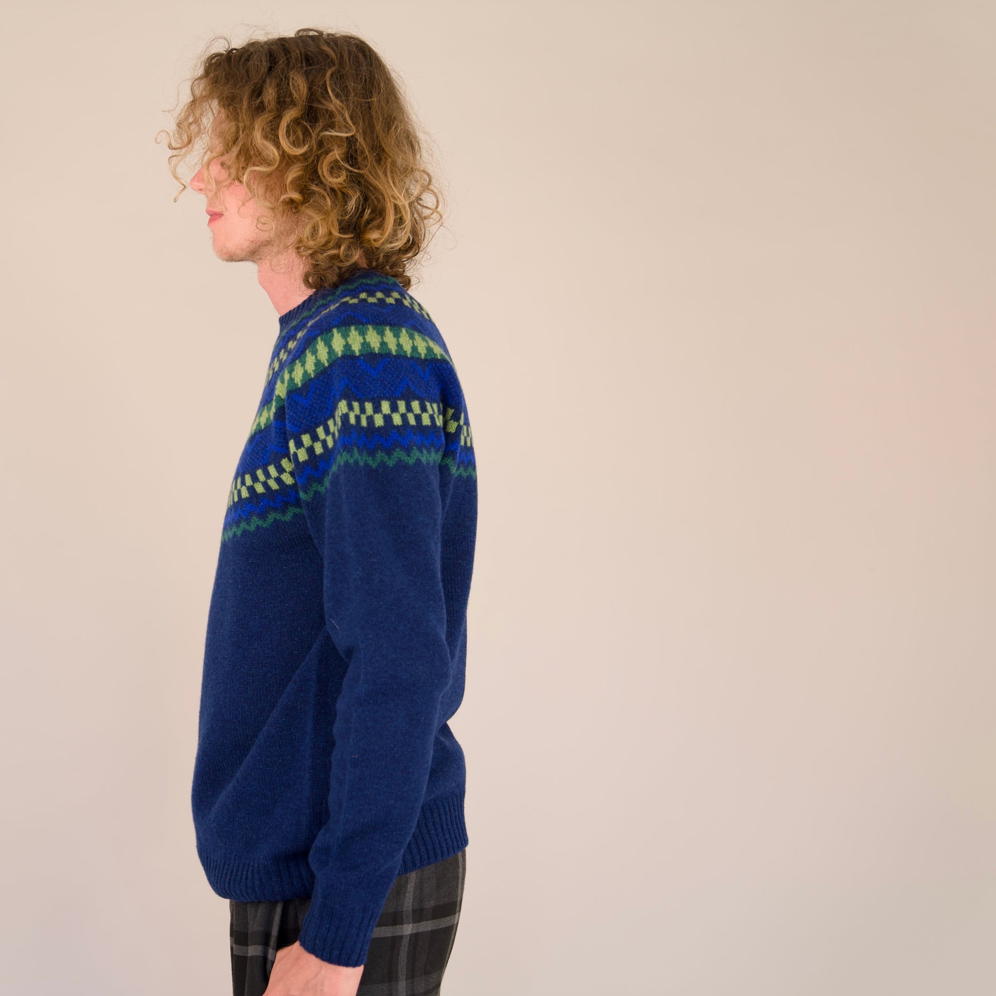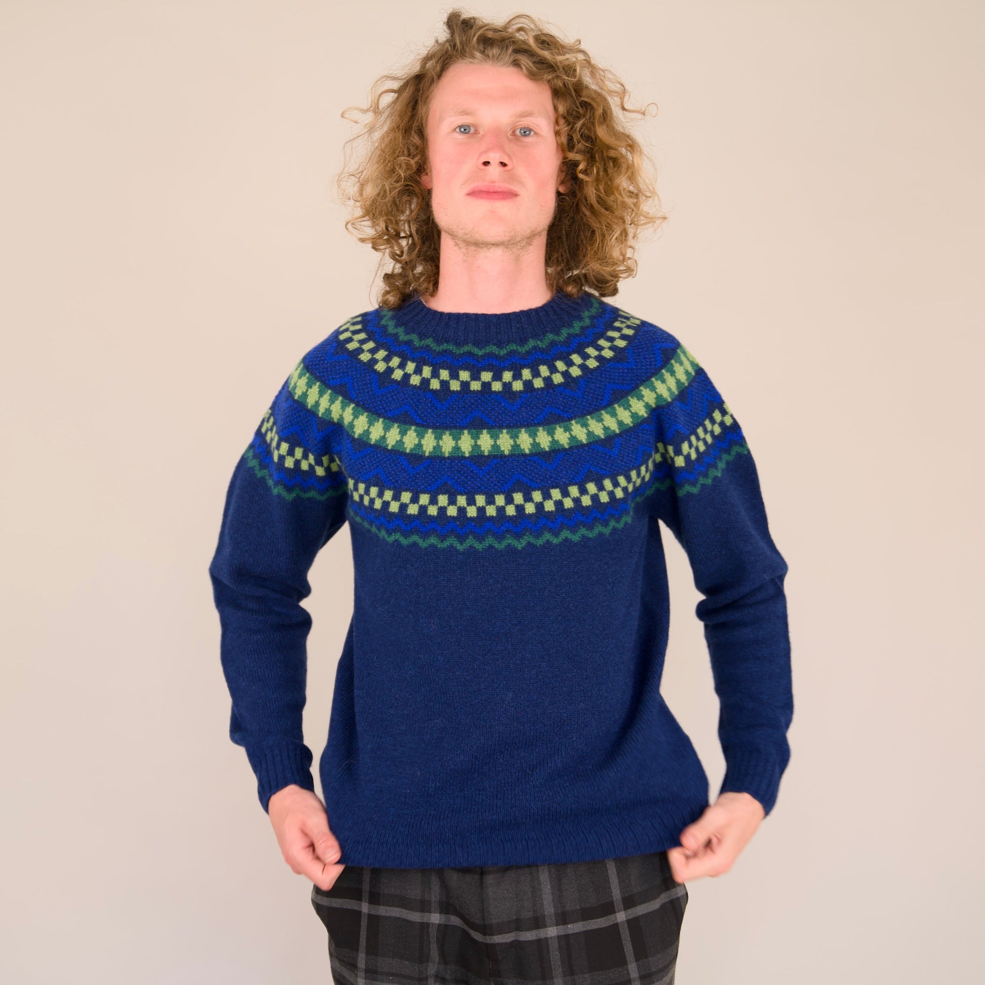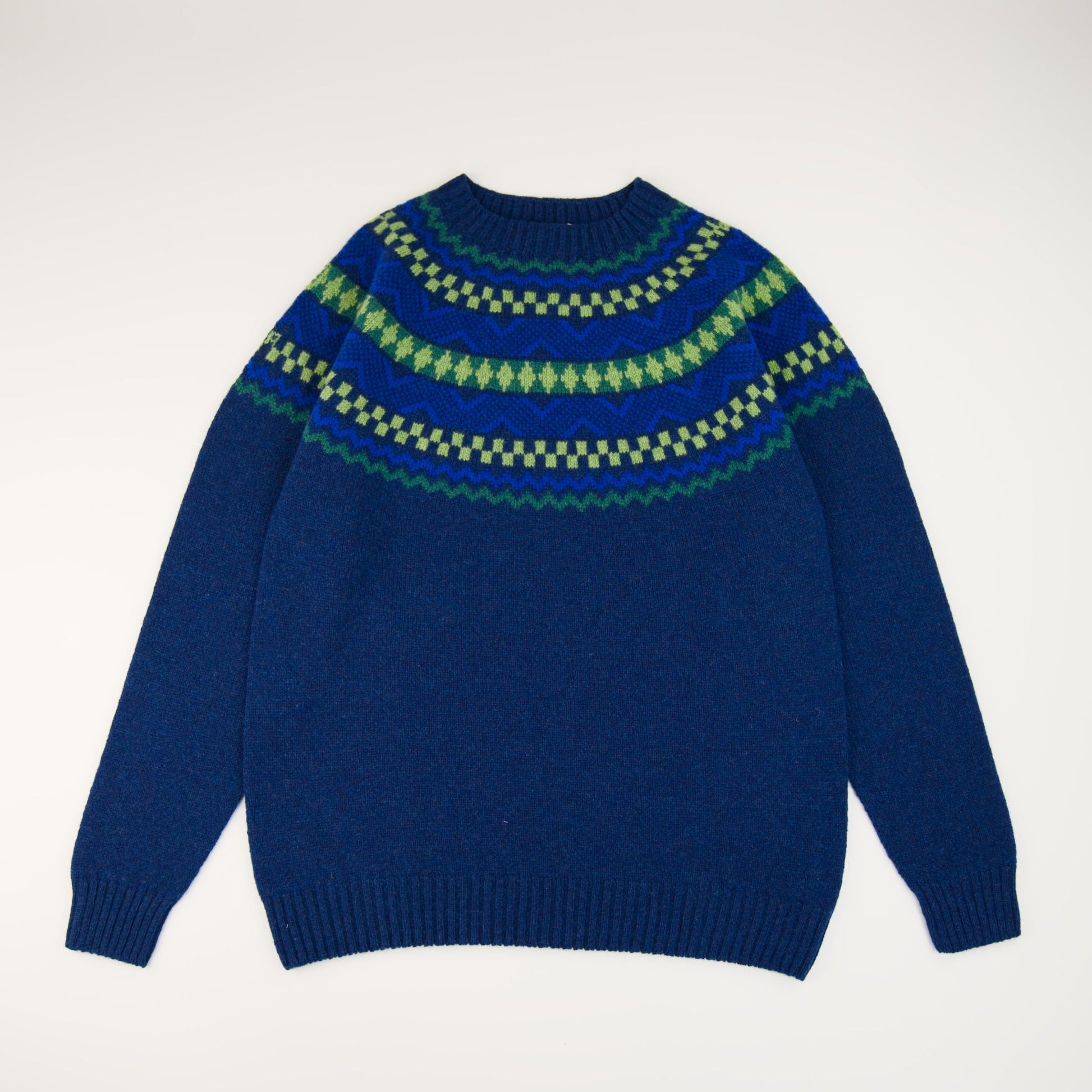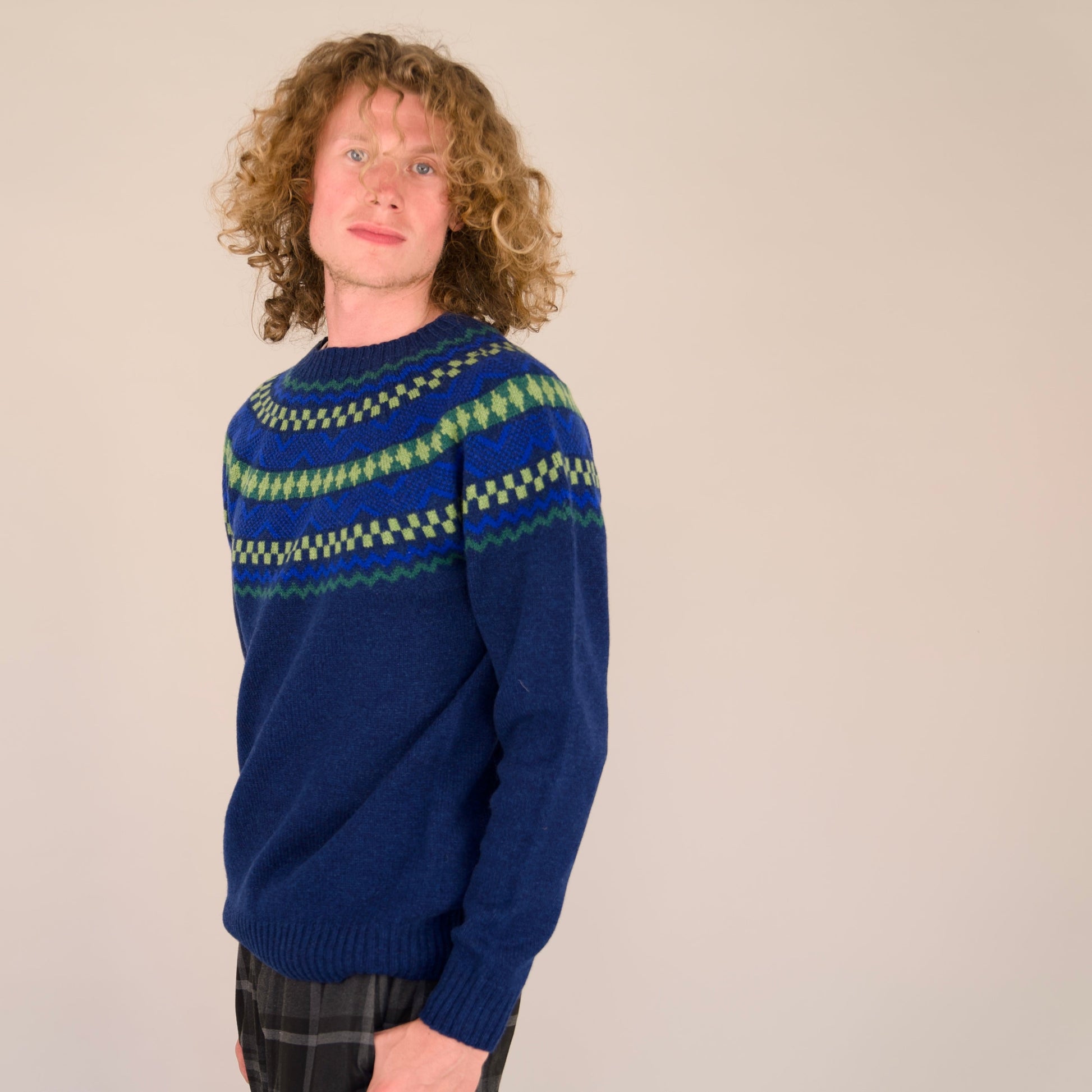 The unmistakable geometric patterns of the Fair Isle jumper have become a symbol of British culture and has long been a favourite of the Royal Family dating back to the 1920s. The Soho is our most technically advanced jumper due to the complex knitting techniques required for the seamless yoke pattern.