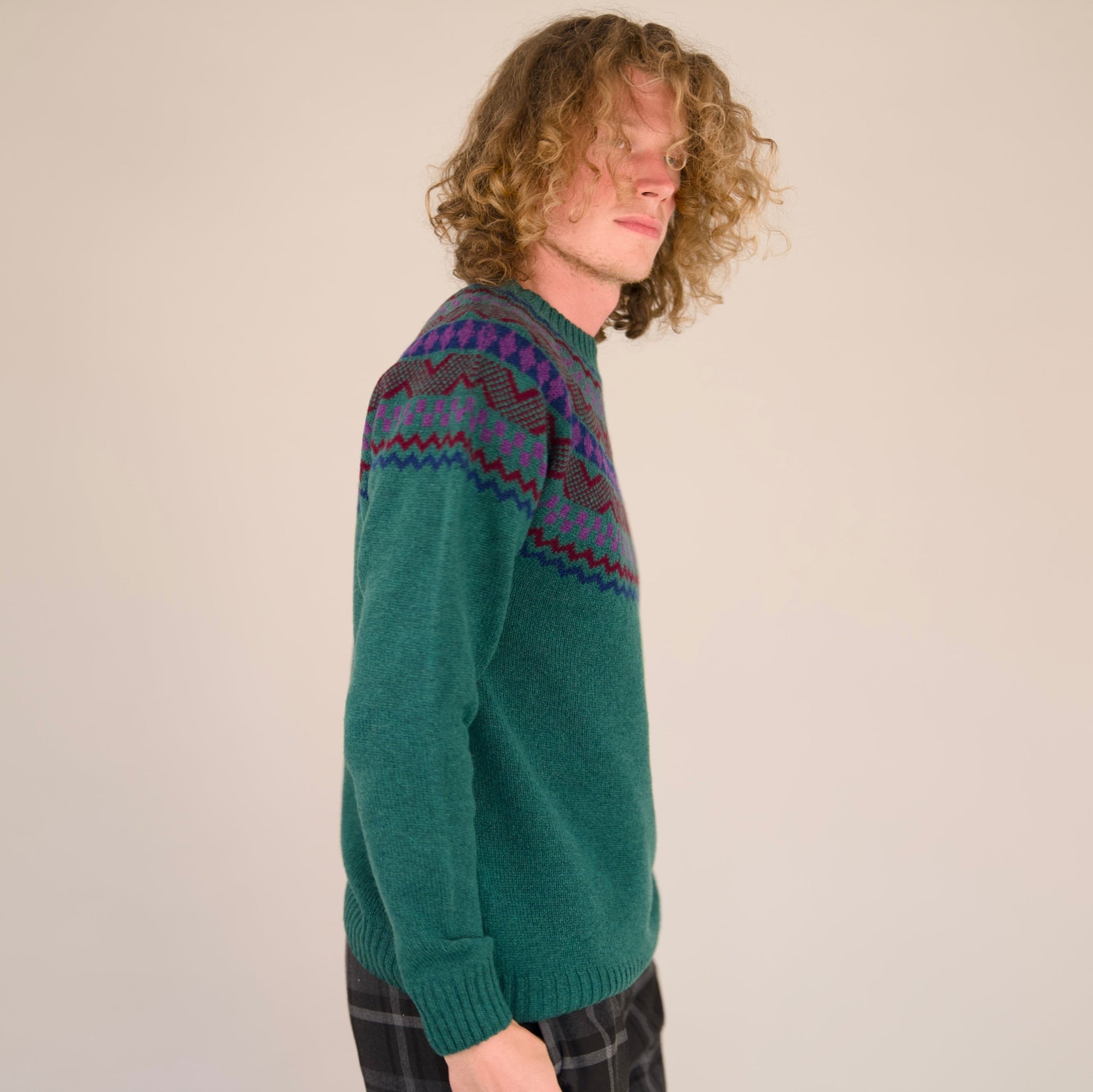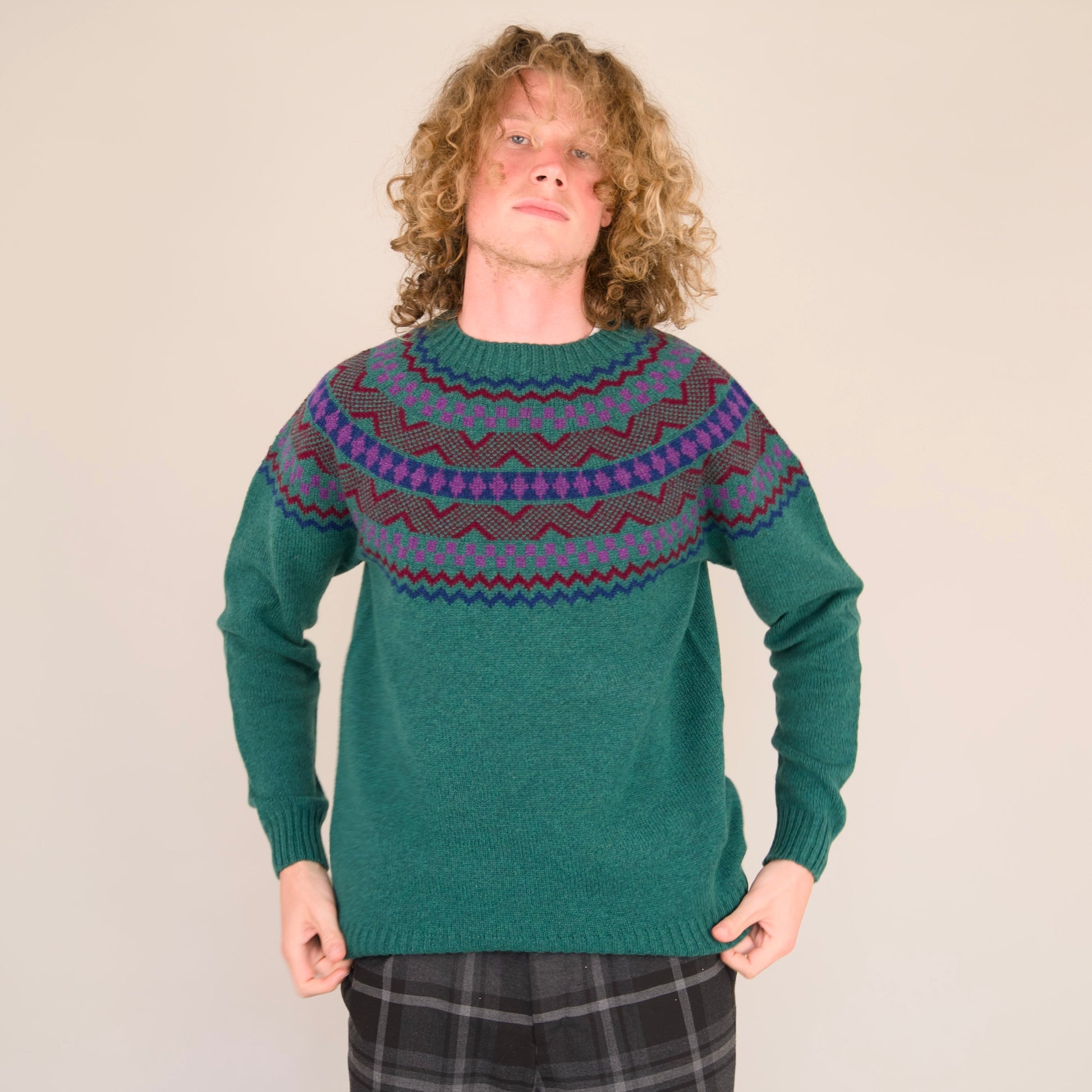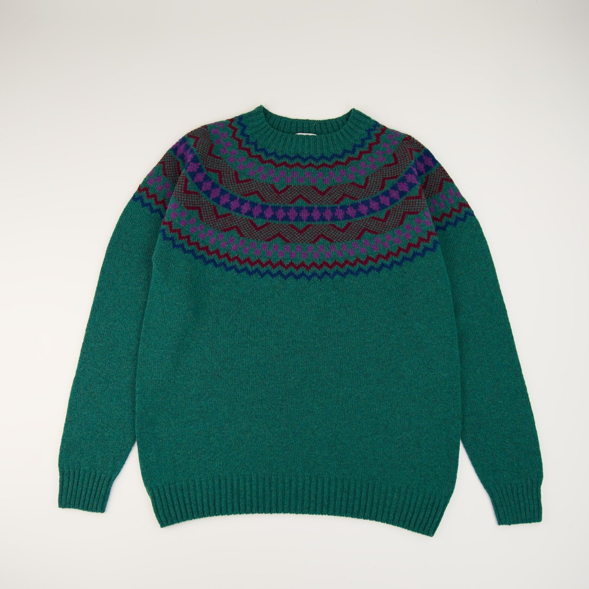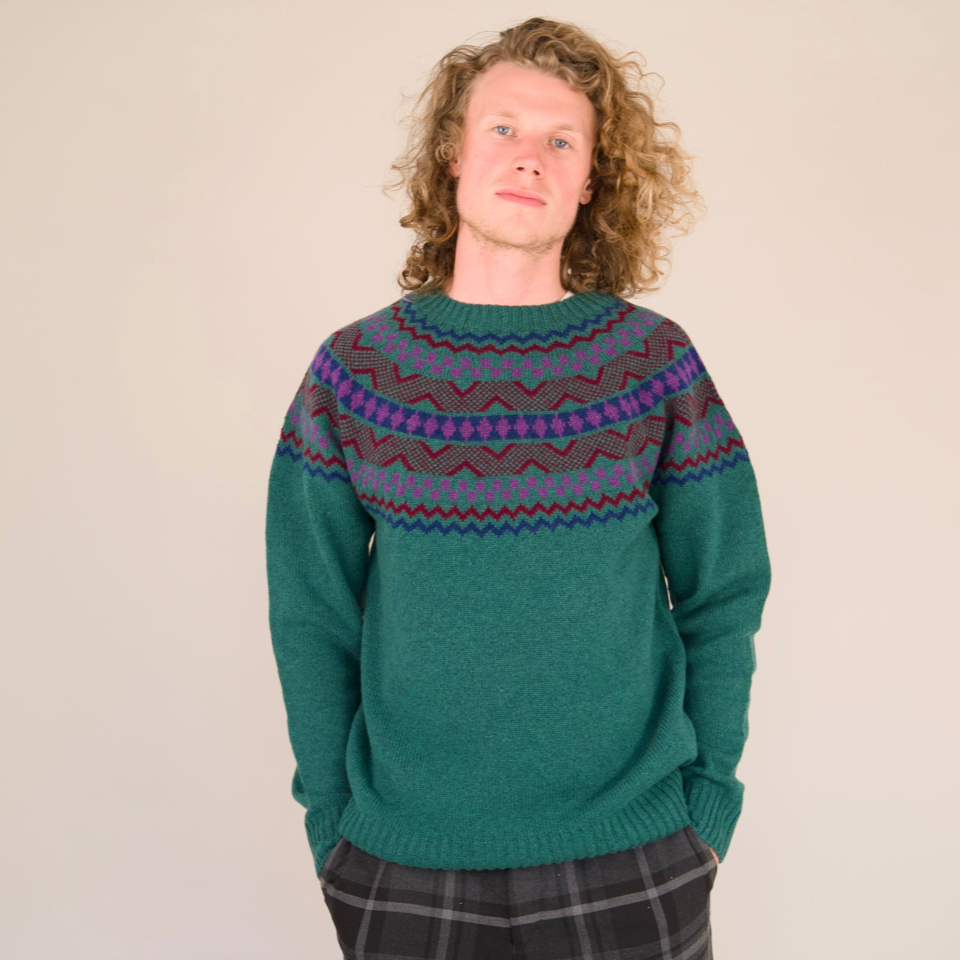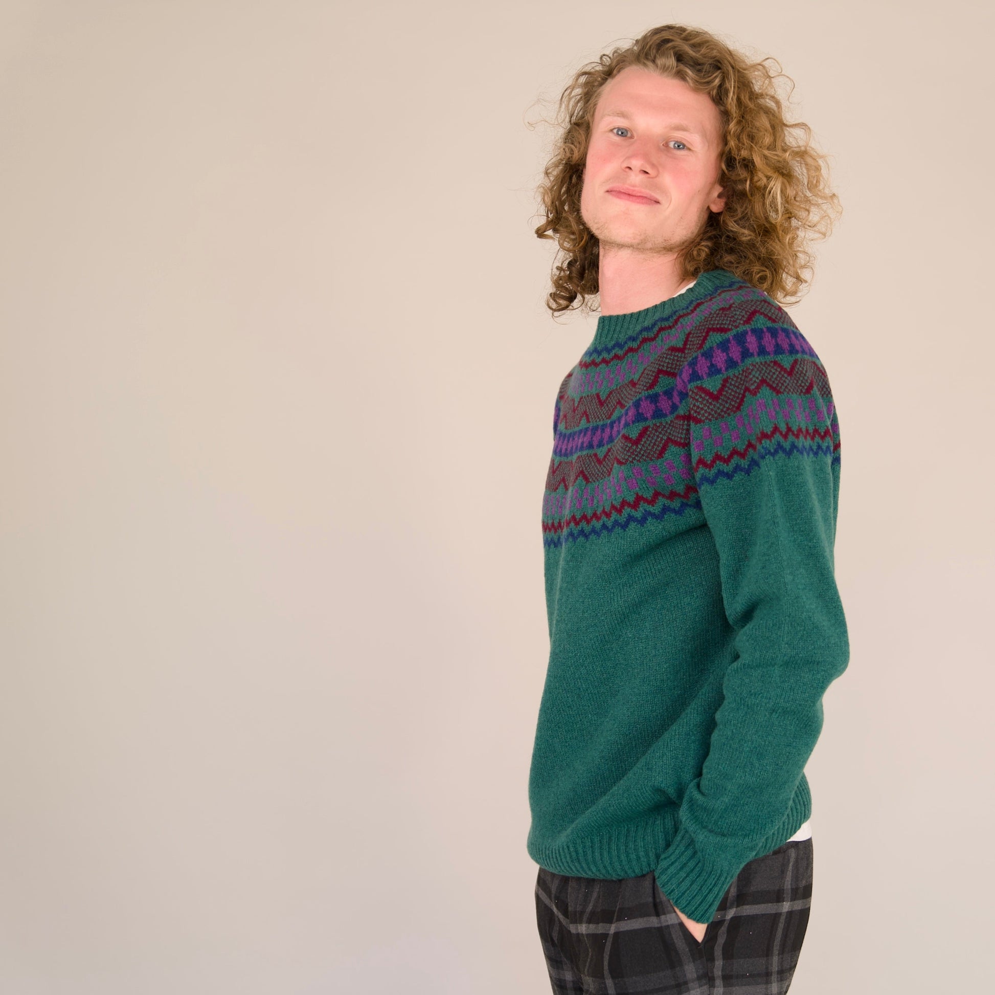 The unmistakable geometric patterns of the Fair Isle jumper have become a symbol of British culture and has long been a favourite of the Royal Family dating back to the 1920s. The Soho is our most technically advanced jumper due to the complex knitting techniques required for the seamless yoke pattern.