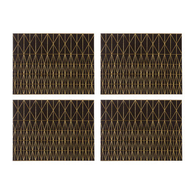 Geome Set Of 4 Leather Effect Black And Gold Prism Placemats