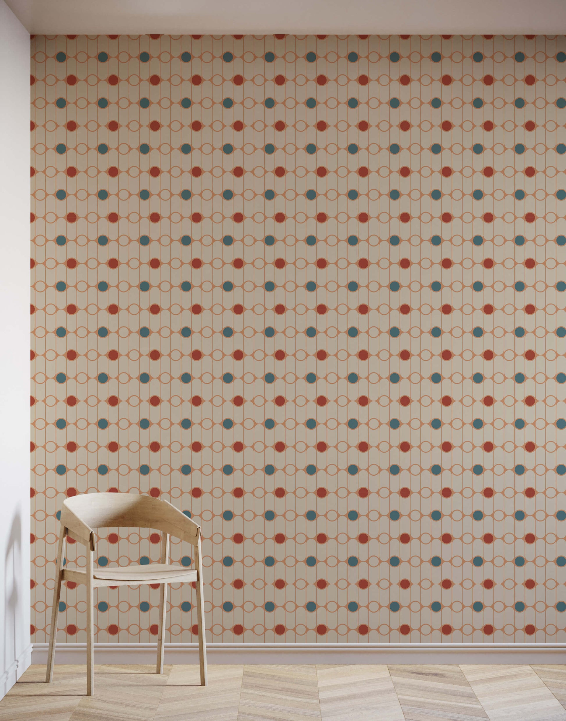 A satisfyingly simple, retro style, polka dot design. Gibson uses minimal shapes to build a wonderfully versatile wallpaper. Available in gorgeous colour ways that will go a long way to compliment retro styling.