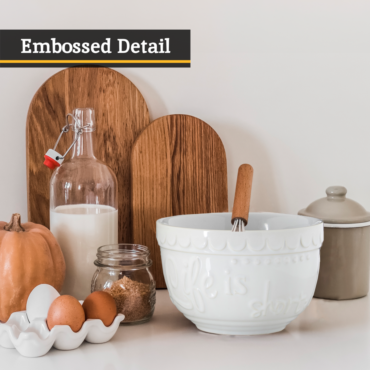 - Pair with wooden spoons and a wire whisk for a ready gift set.