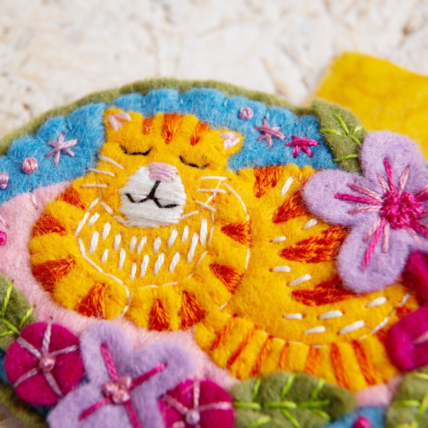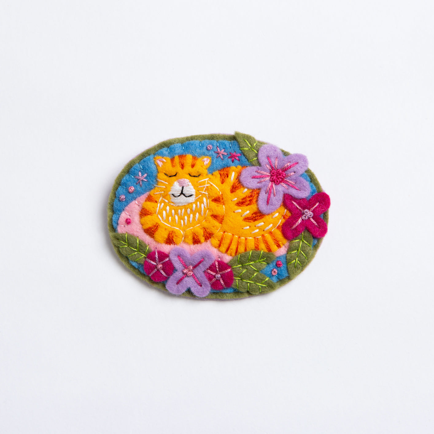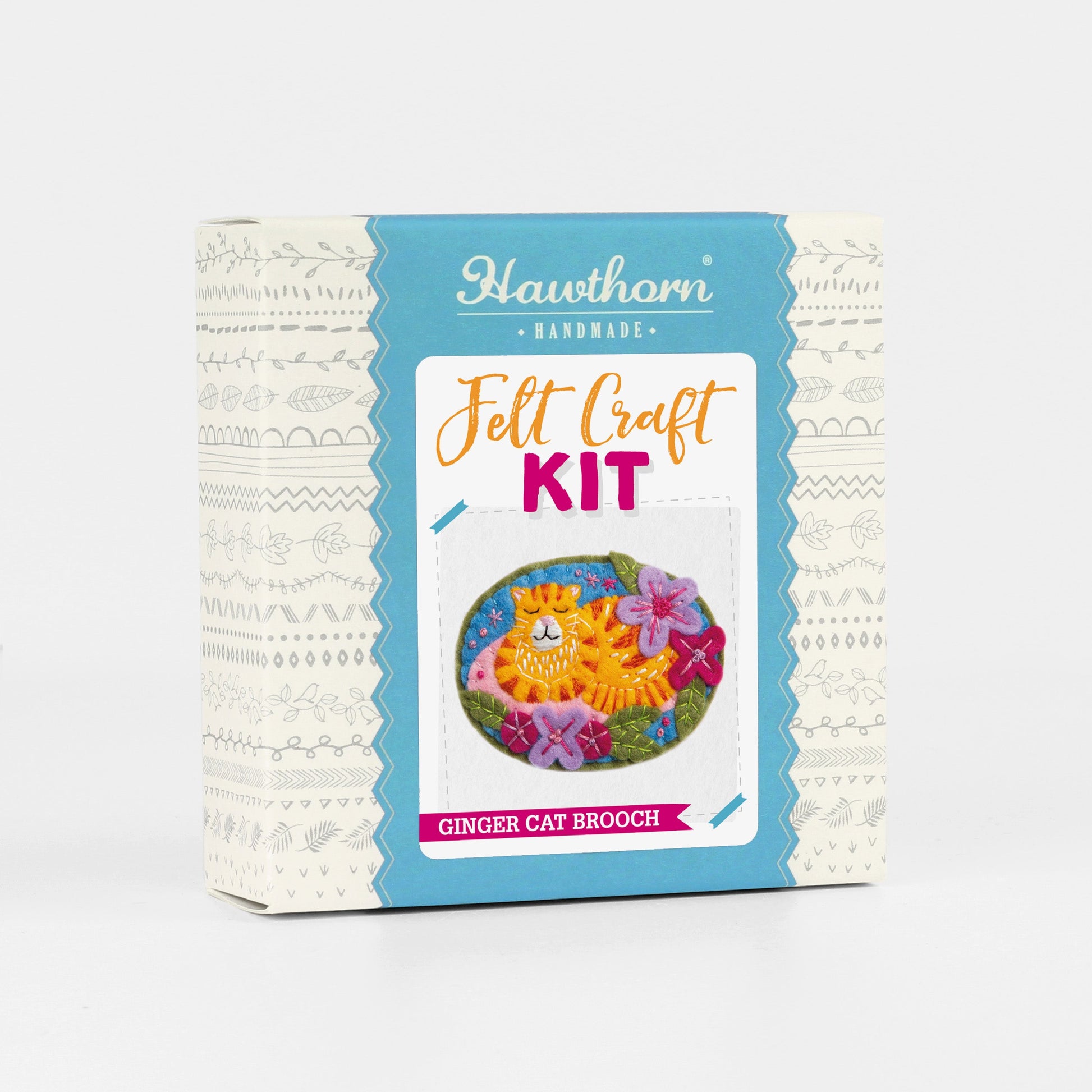 Learn hand embroidery and applique skills with this complete felt craft kit. This Ginger Cat wool felt brooch craft kit is a great way to get creative and discover this fun craft. Each kit comes with everything you need to make your very own unique hand-stitched feline brooch!