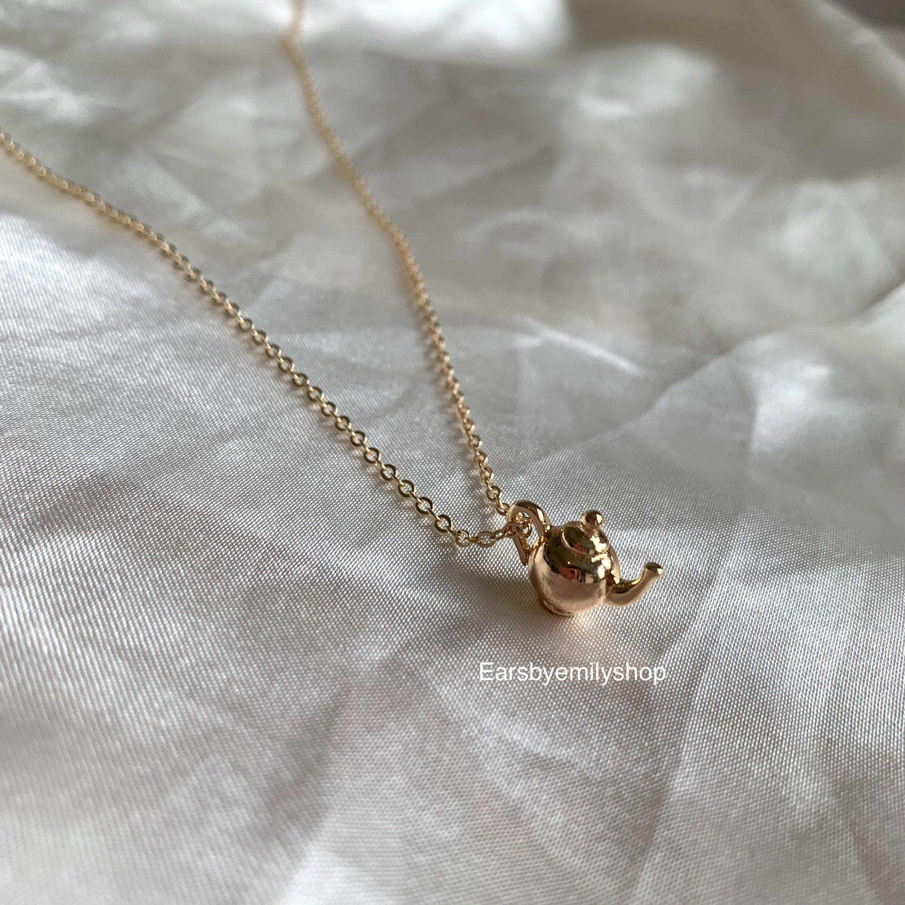 A beautiful gold plated tea pot pendant handmade necklace on a 24k gold plated chain.