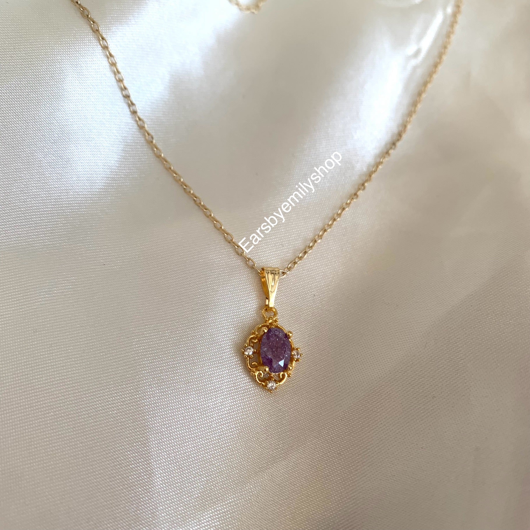A beautiful gold plated purple crystal pendant handmade necklace on a 24k gold plated chain. As the crystal used as all unique. So too will the appearance of each pendant in terms of colour.