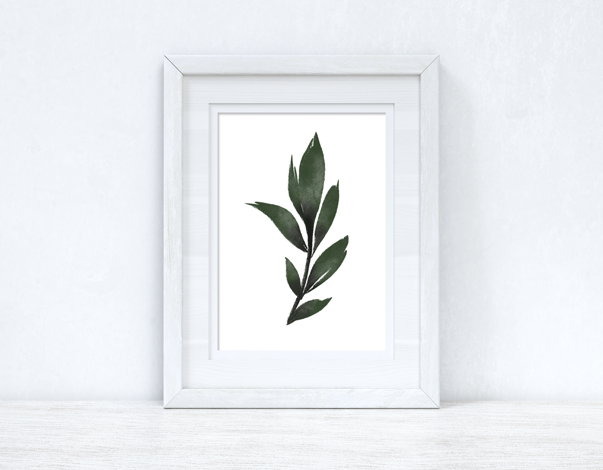 Green & Black Watercolour Leaf 2 Bedroom Home Wall Decor Print