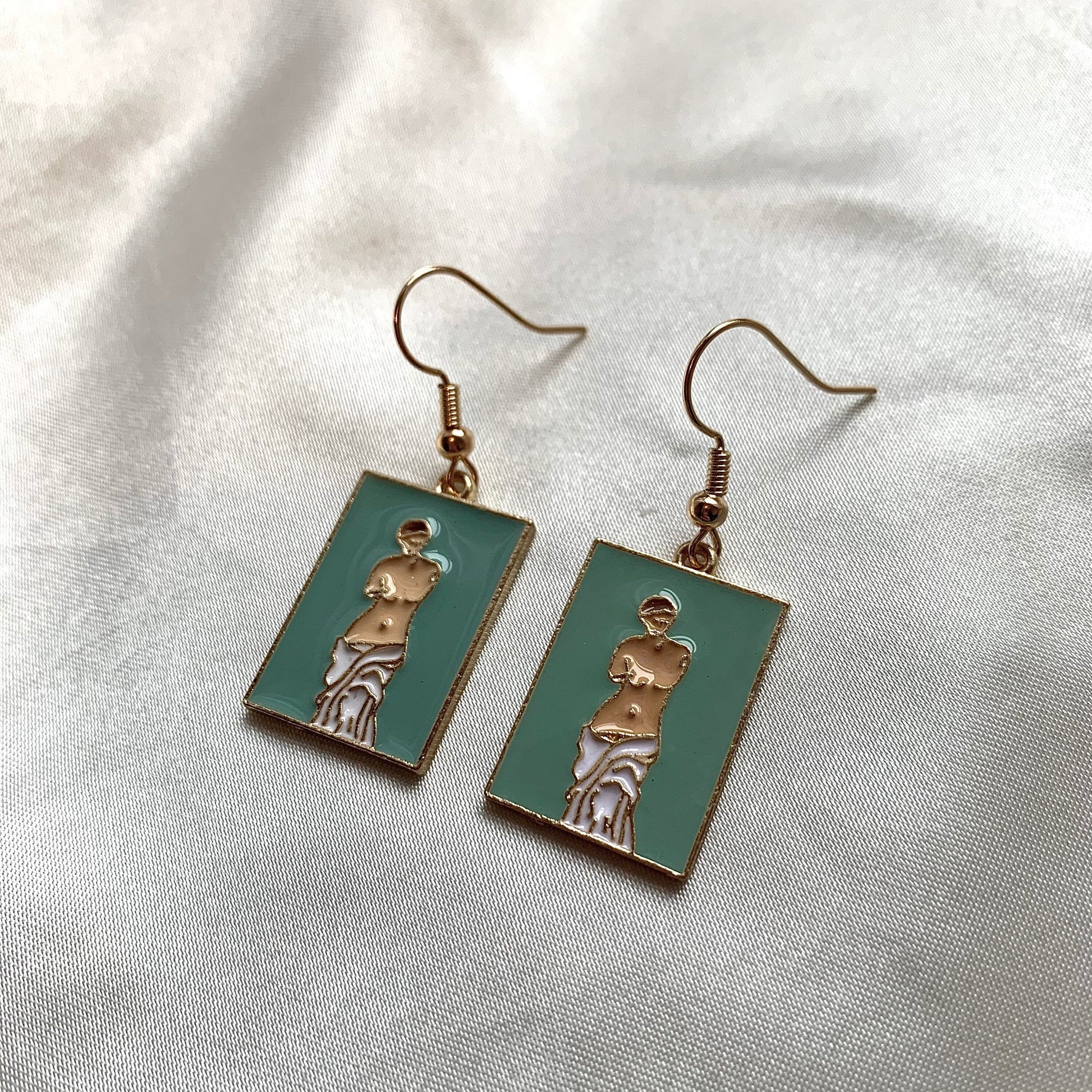 Green greek statue bust gold earrings