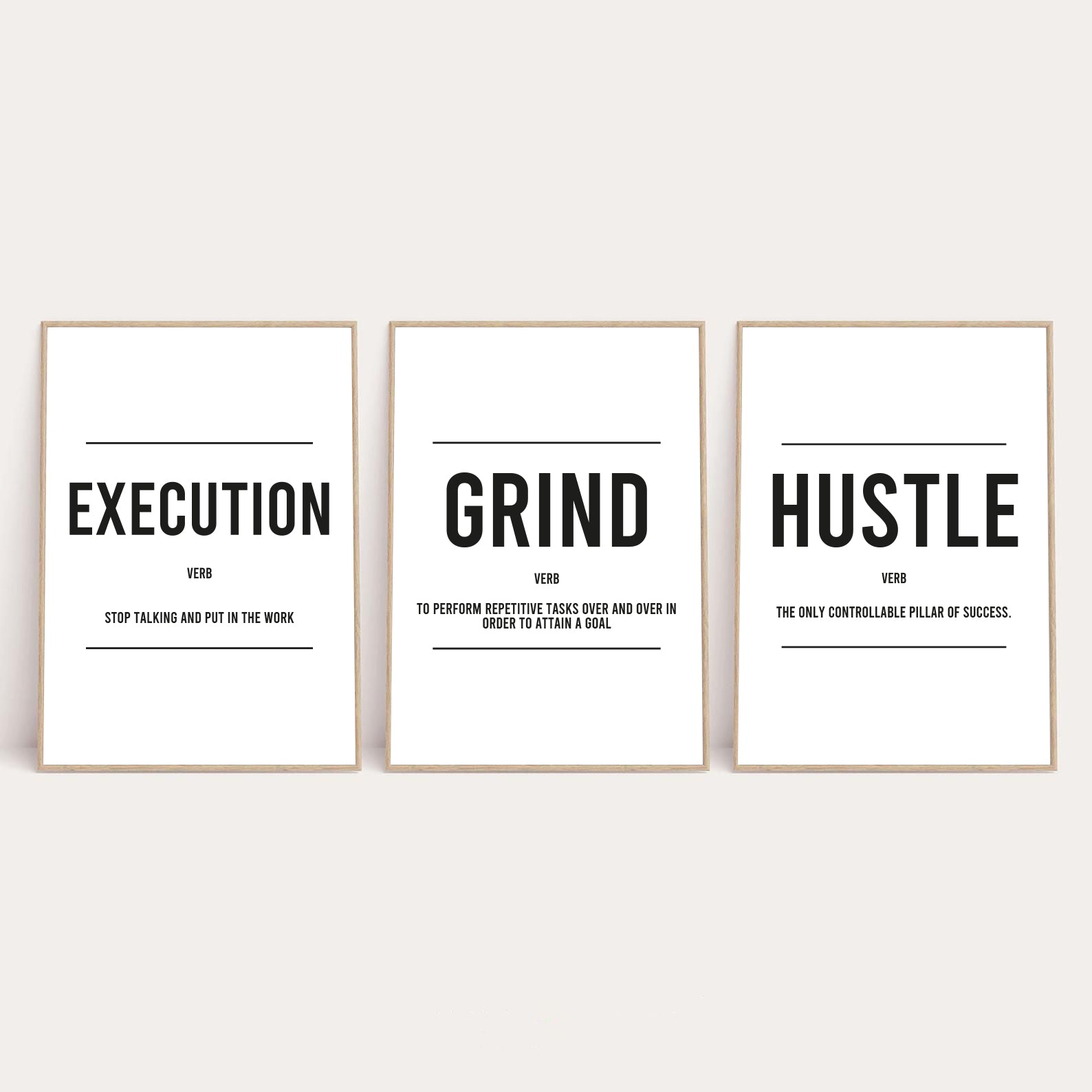 Grind Hustle Execution Inspirational Wall Decor Quote Print Set Of 3