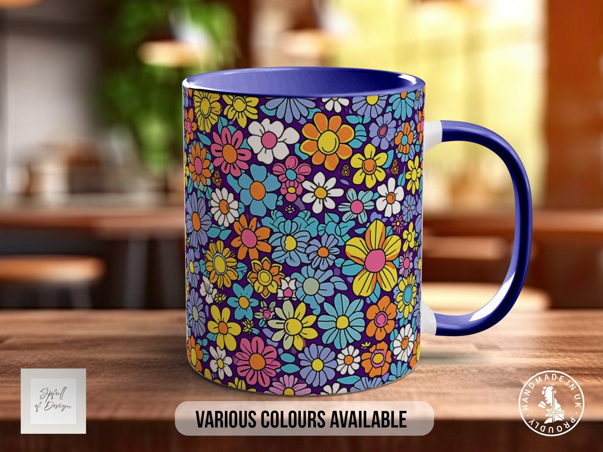 Groovy Flower Mug – Vibrant Retro Art Mug | Handmade Ceramic, Dishwasher Safe