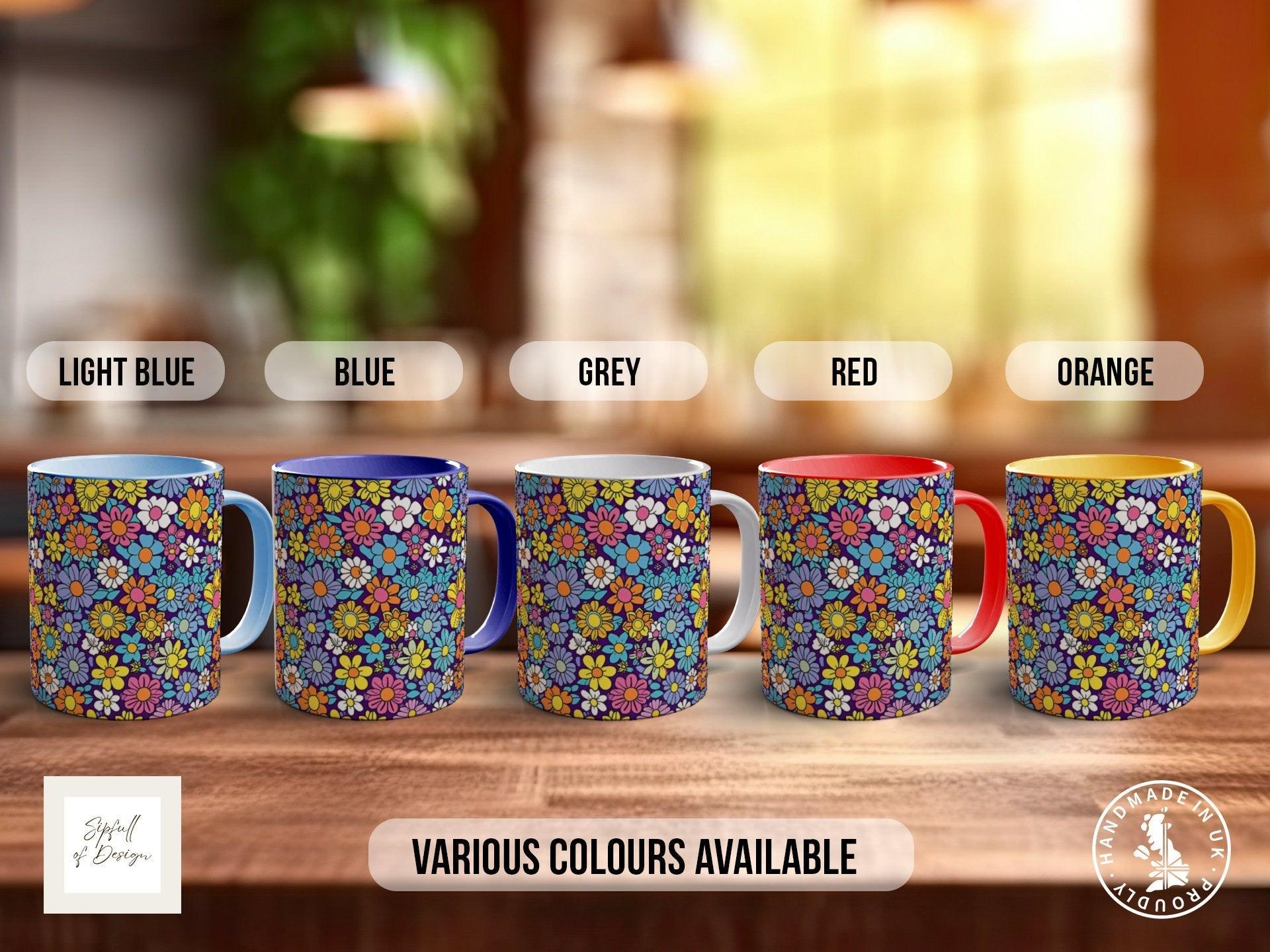 The Groovy Flower Mug brings a burst of vibrant retro charm to your daily brew. Handmade with care from high-quality ceramic, this 11oz mug features colourful groovy flower designs that wrap fully around, adding a joyful splash of colour to your morning routine. Each mug is thoughtfully crafted on premium ORCA stock, ensuring both durability and a vivid finish that lasts through everyday use and up to 800 dishwasher cycles. As a practical and beautiful companion for your tea or coffee, this mug also comes with a 1-Year Print Guarantee, reflecting our confidence in its quality and craftsmanship.
