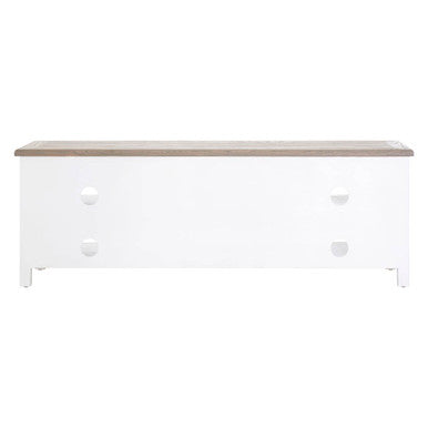 Orsina streamlines entertainment zones with the Hampstead Media Unit. The Hampstead Media Unit offers four open shelves for consoles and media boxes plus two drawers for accessories, all within a crisp birchwood cabinet on Orsina.