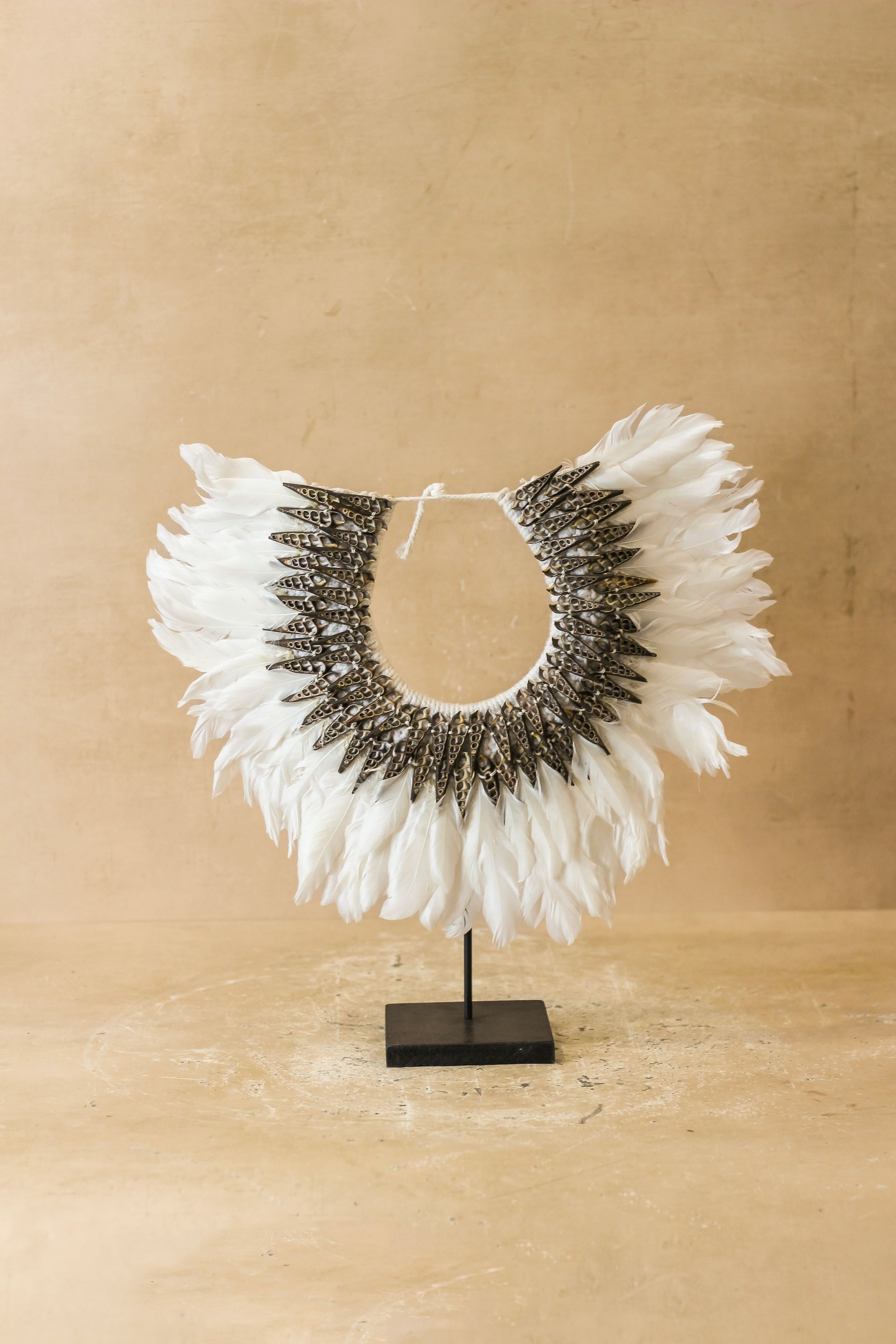 Elevate your space with the Handmade Feathers and Shell Necklace, a stunning piece that combines intricate craftsmanship with timeless natural materials. Perfect for those who value unique decor, this necklace is a celebration of artistry and cultural heritage, blending delicate feathers and carefully arranged shells into a striking design.