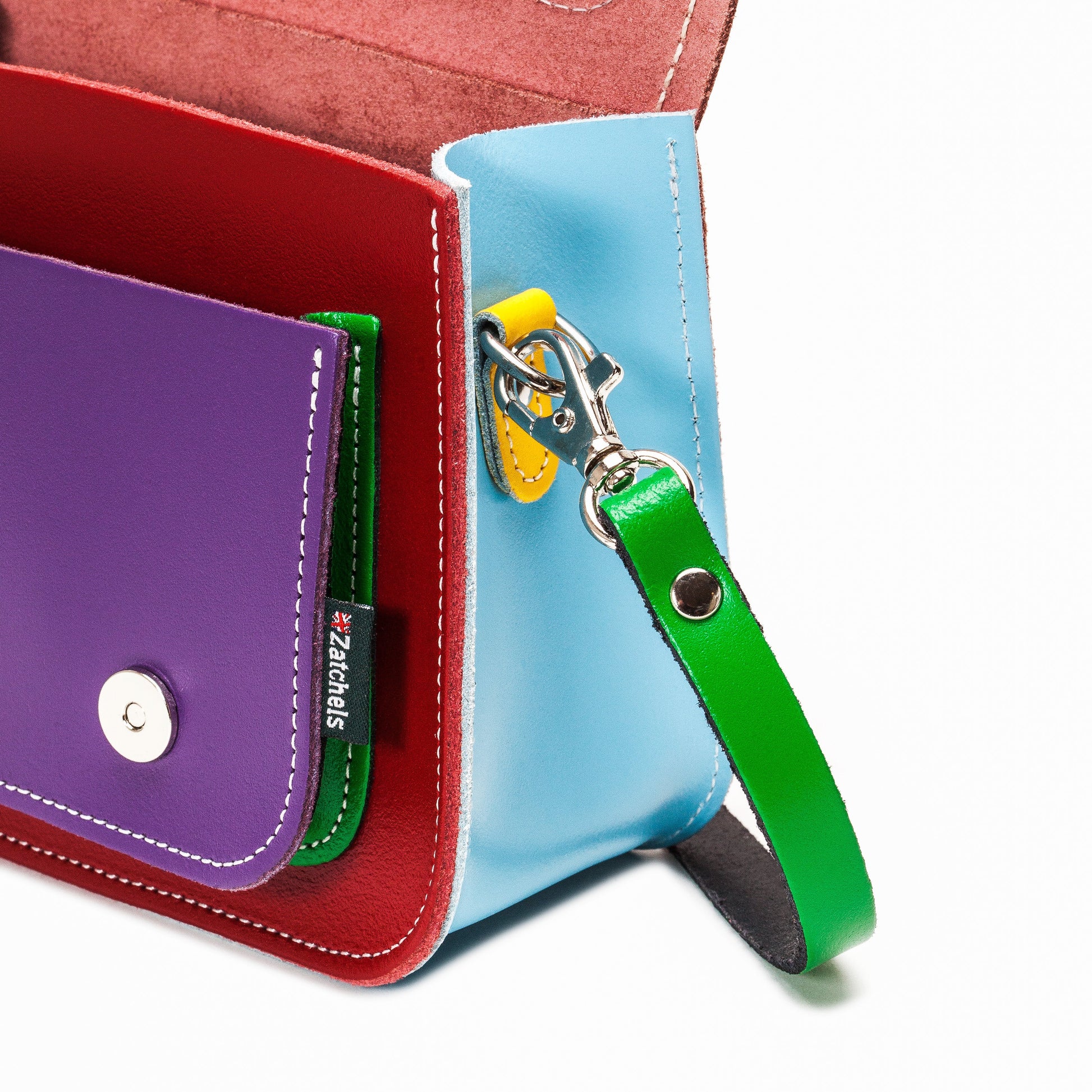 This fantastic kaleidoscope micro satchel is carefully handmade in England from the best quality leather, using traditional British expert craftsmanship.