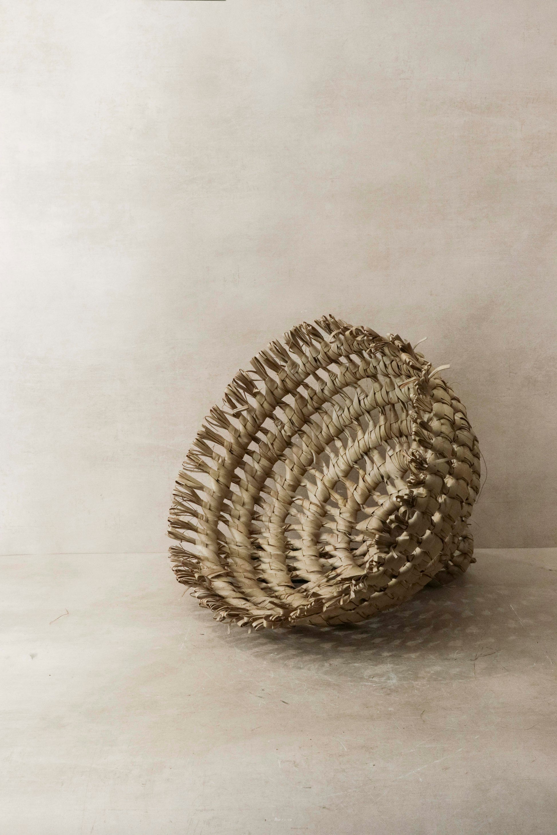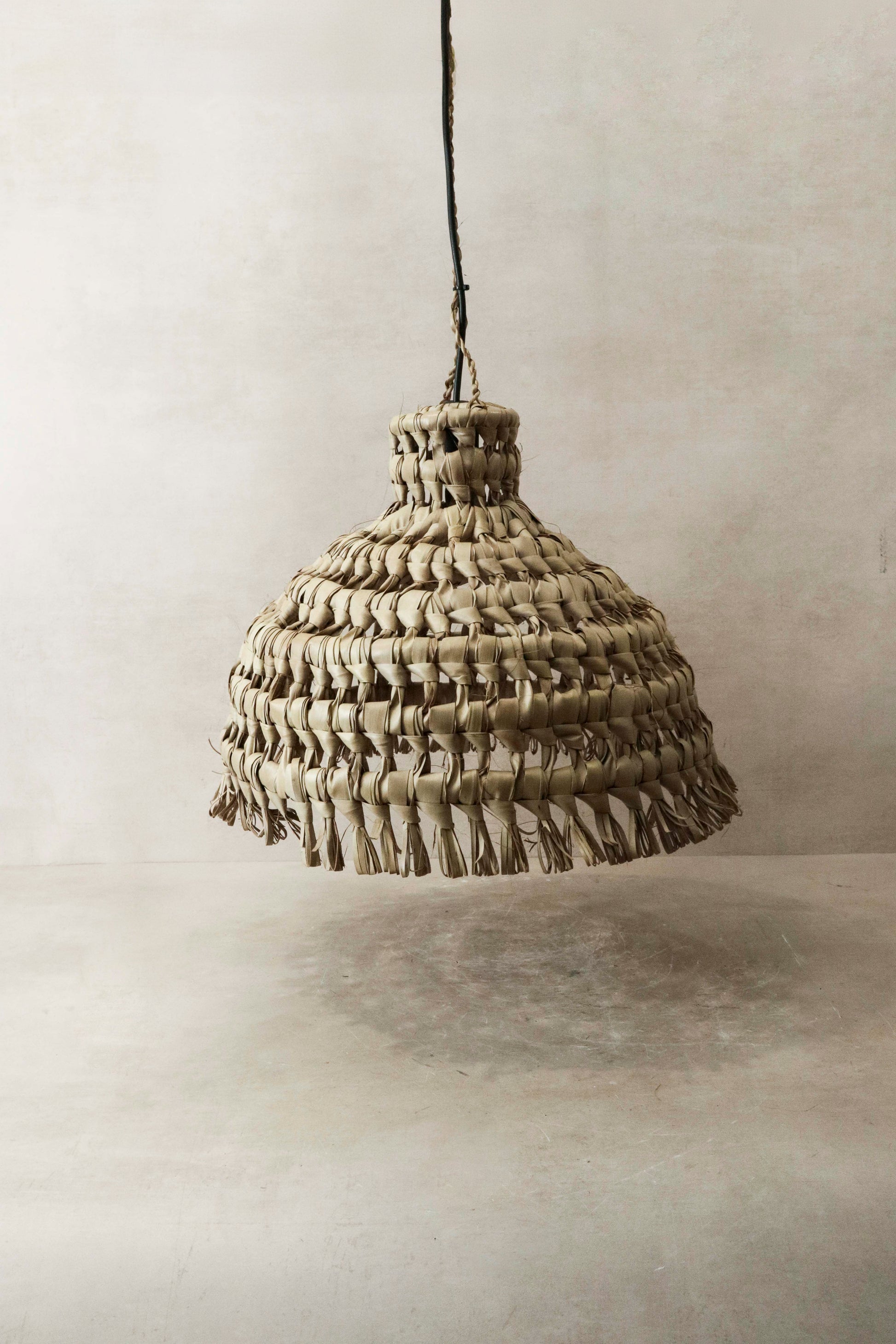 A beautiful modern pendant shade made from Ilala Palm dried leaves by a local artisan in Mozambique.