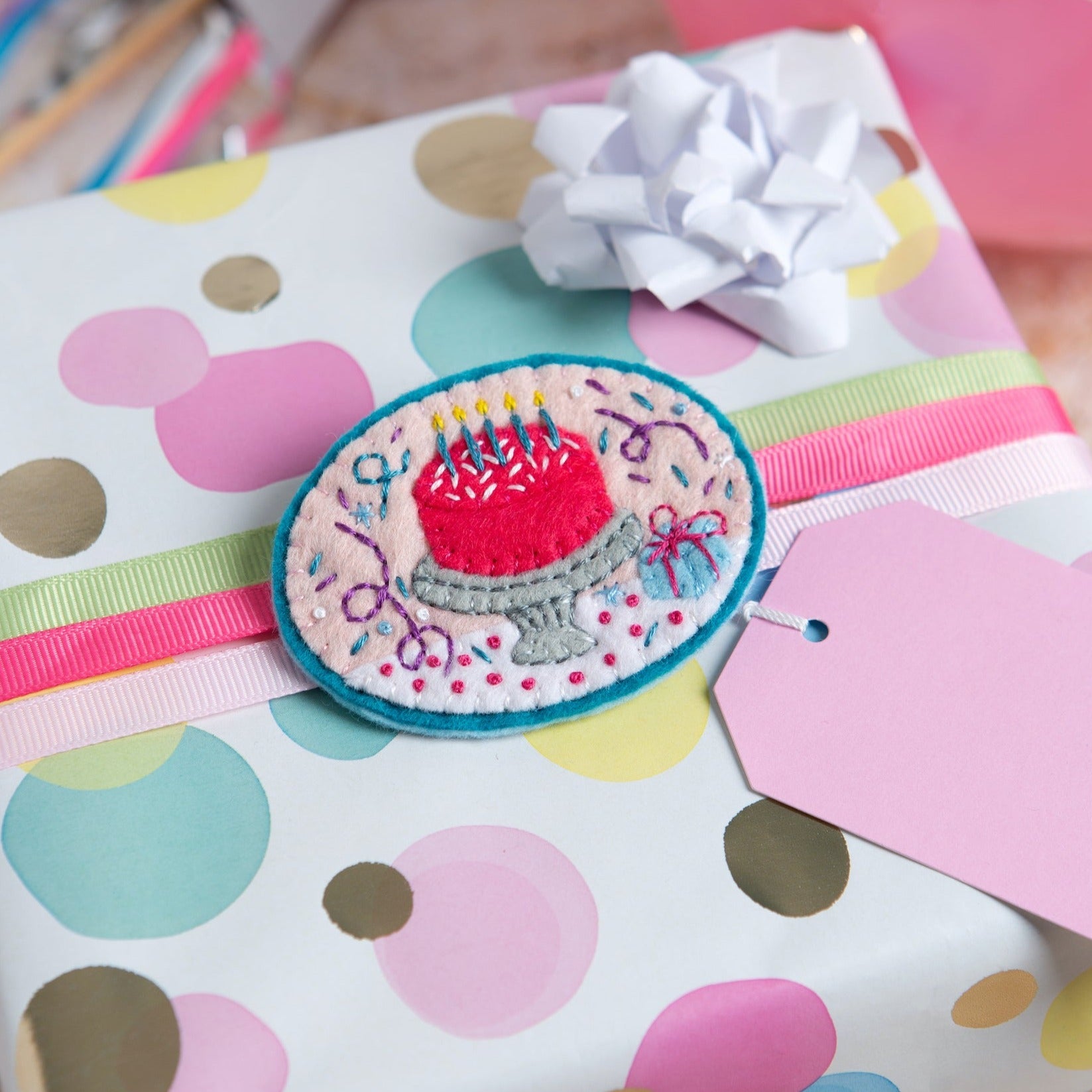 'Happy Birthday' Gift Felt Craft Brooch Kit for Beginners