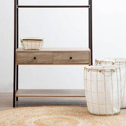 Looped handles on their rims make it easy to carry the load to the washing machine. Clothes remain out of sight thanks to the removable cotton liners, held securely in place with snap fastenings.