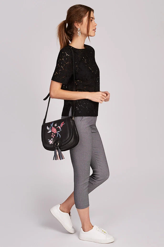 Hazel Hummingbird Embroidery Saddle Bag