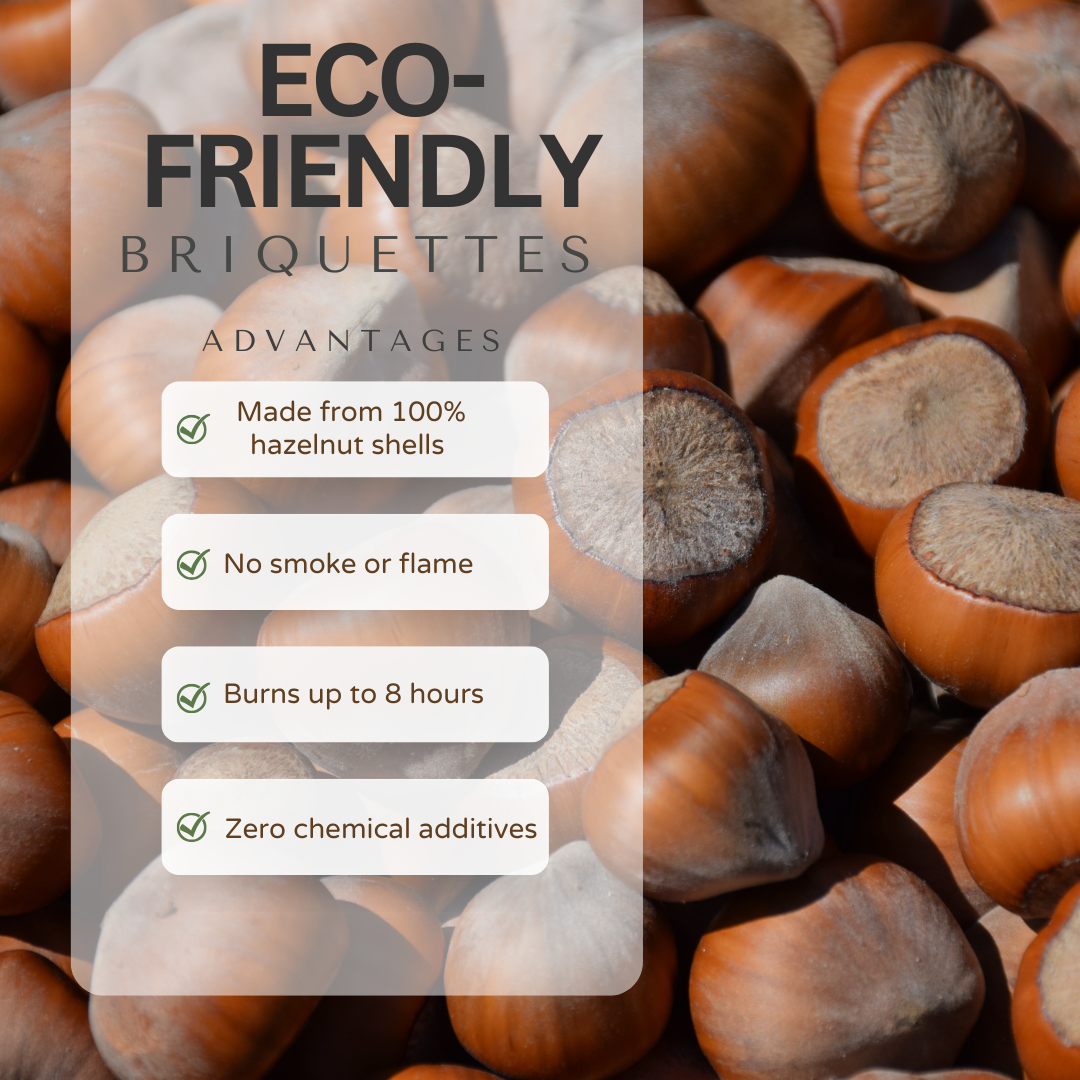 - Unrivaled Sustainability: Made from 100% recycled hazelnut shells, HazelHex Briquettes represent a significant step towards a greener future. By choosing HazelHex, you're supporting sustainable practices and reducing waste.