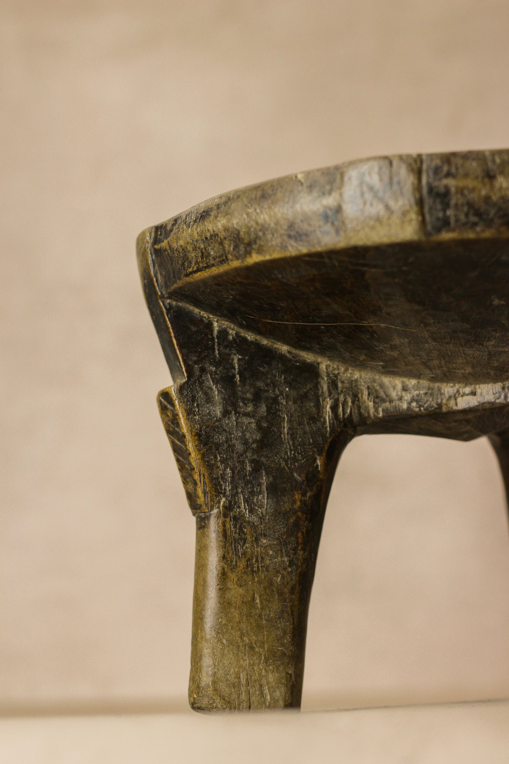 Historical Details: The seat is the most important piece of furniture in Africa. It serves as a social insignia because every person is entitled to a type of seat that corresponds to their social rank. These Hehe stools are generally 3 or 4 legged with a simple round polished top.