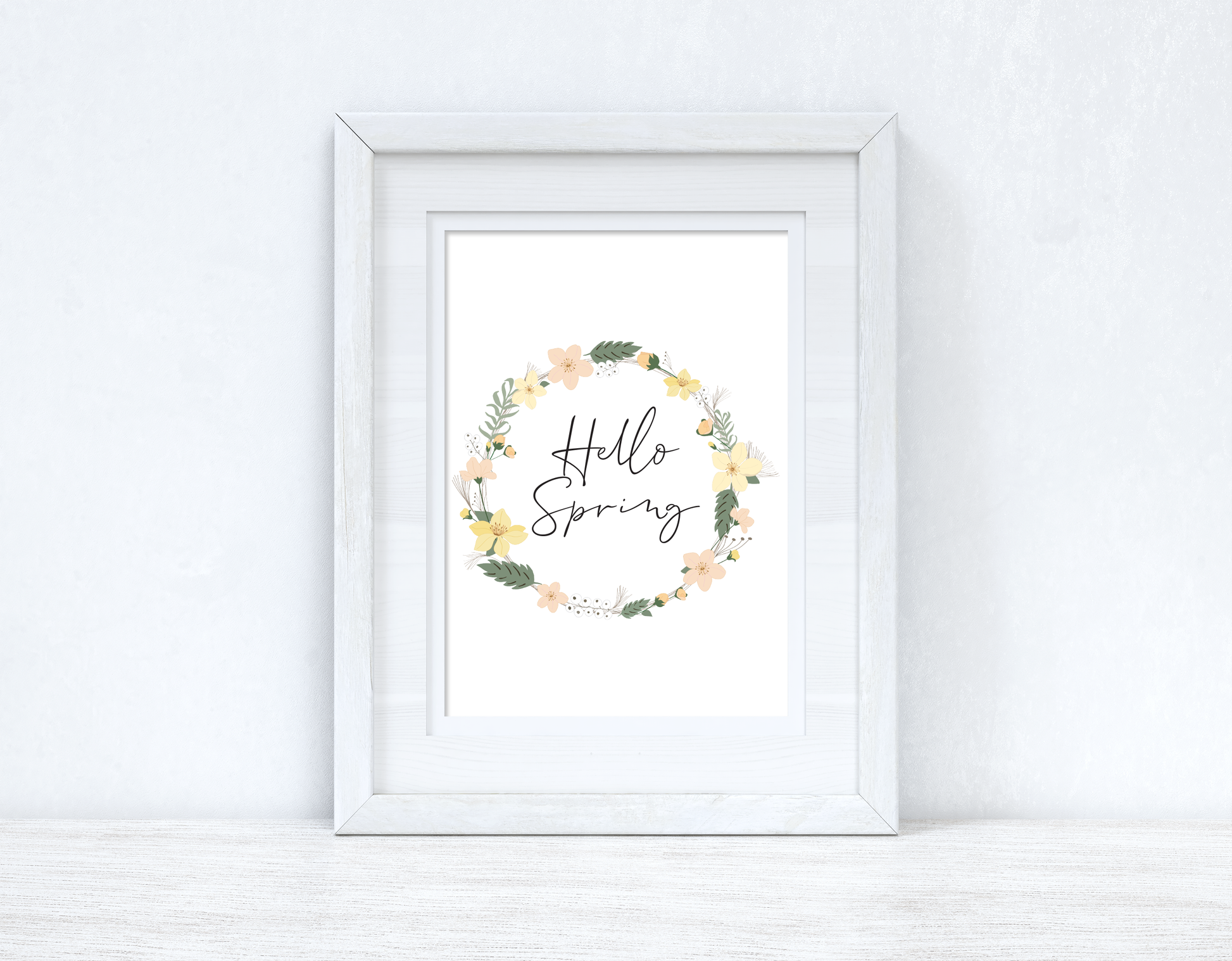 Hello Spring Floral Wreath Spring Seasonal Wall Home Decor Print