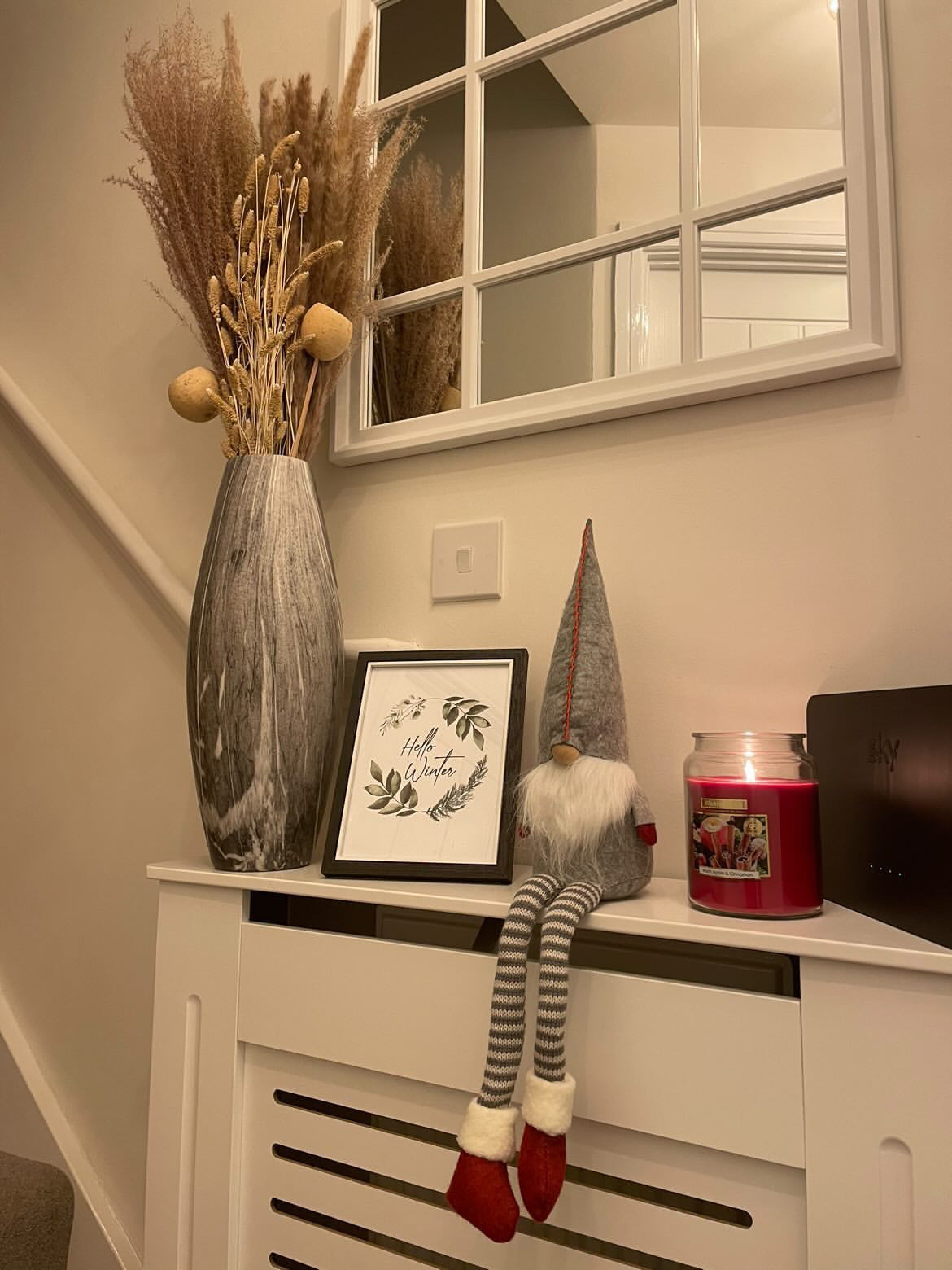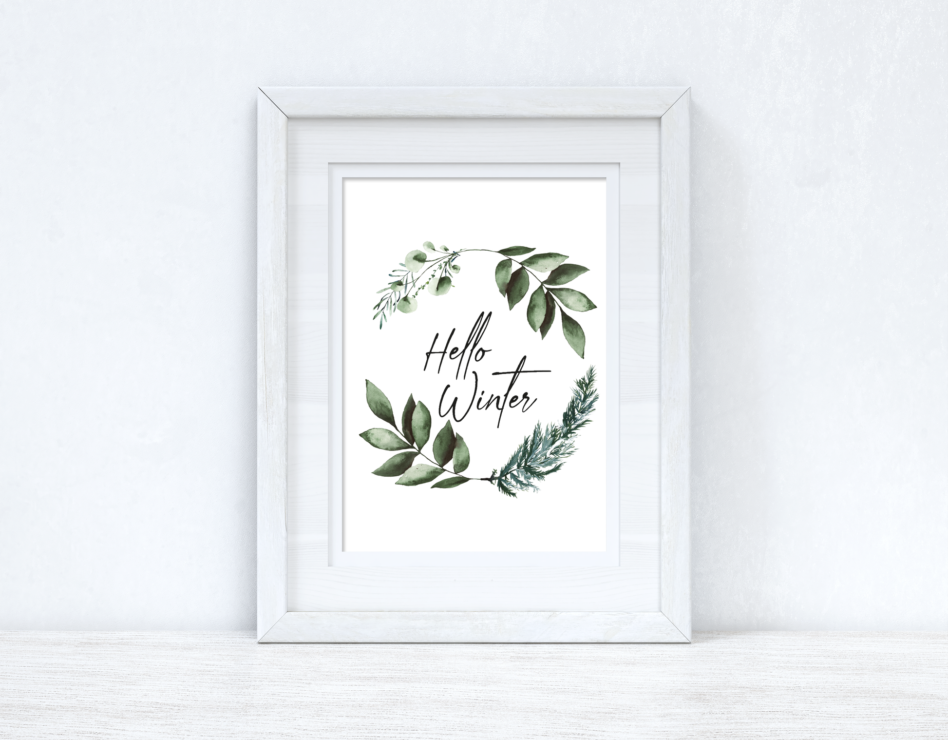 Hello Winter Greenery Pine Wreath Winter Christmas Seasonal Wall Home Decor Print