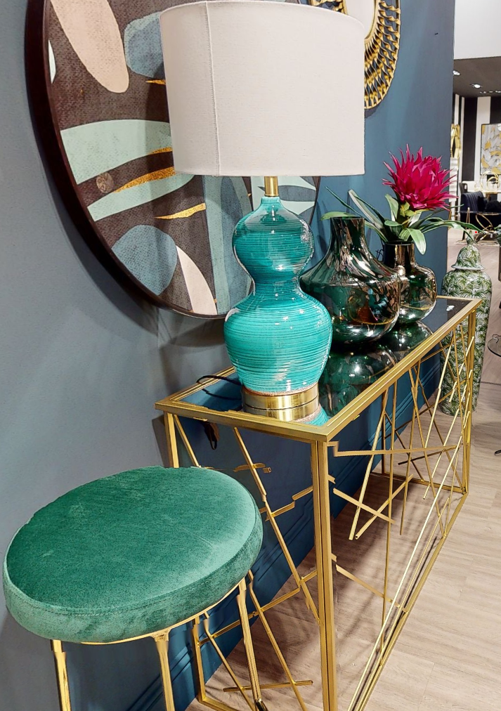 On an entry console, the Green and Gold Large Glass Vase sets a confident first impression with minimal effort.