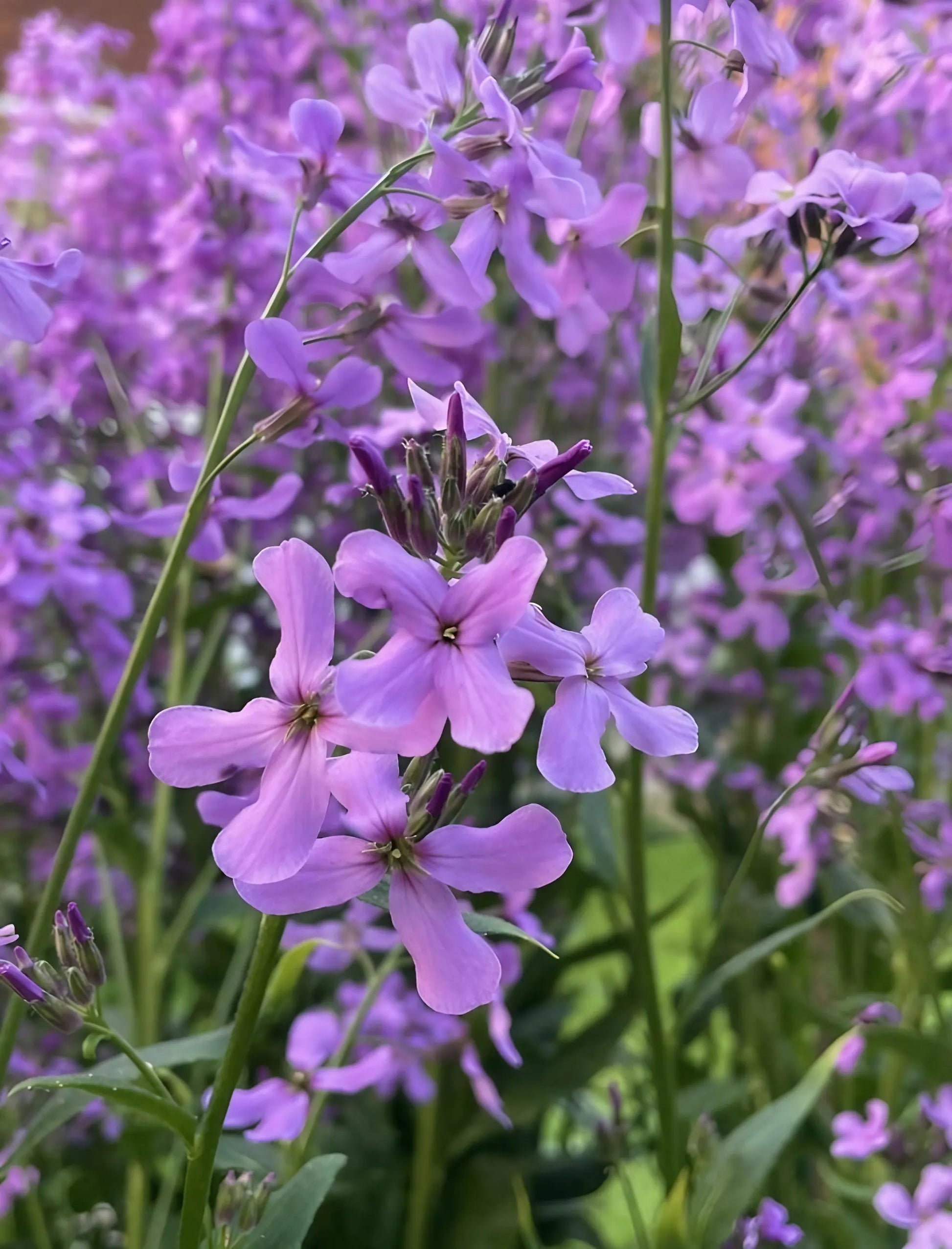 Hesperis matronalis (Sweet Rocket or Dame's Violet) is a cottage garden classic for a reason. It produces tall, branching stems topped with loose clusters of four-petaled flowers in a rich, vibrant shade of violet-purple.