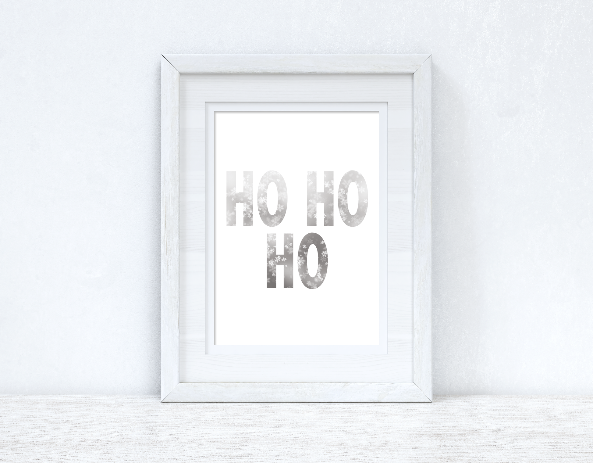 Ho Ho Ho Grey & White Snowflakes Winter Christmas Seasonal Wall Home Decor Print
