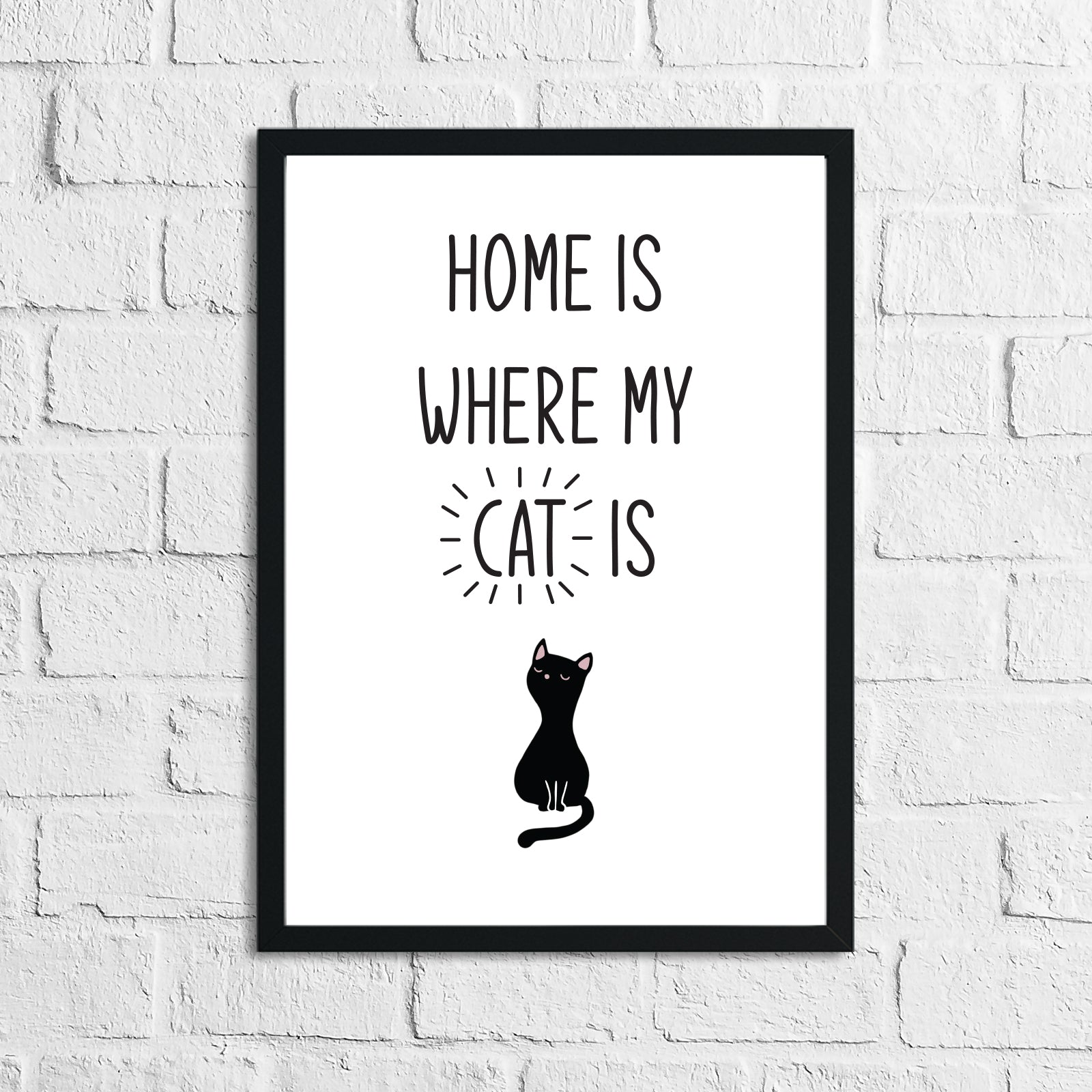 Home Is Where My Cat Is Animal Wall Decor Simple Print