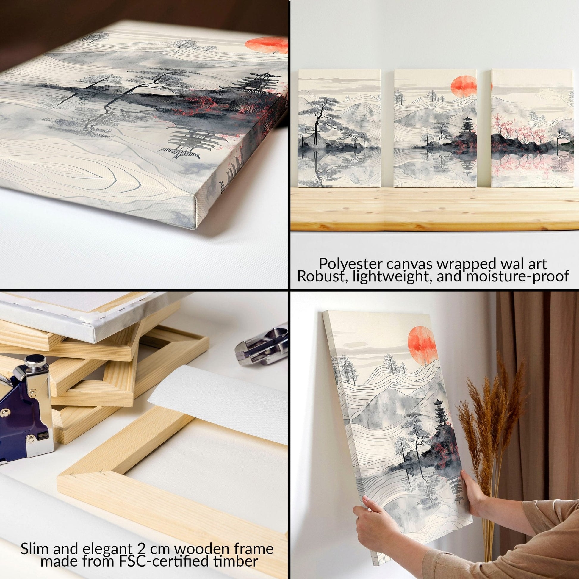 Our Home Office Wall art set offers more than just visual appeal. It introduces balance and style into your office environment, giving also a taste of tranquillity amidst bustling workdays. The refined neutrals are indeed the perfect backdrop, complementing your furniture and decor without overpowering. Moreover, the Japanese-inspired design taps into a sense of minimalism and simplicity, ideal for enhancing a clutter-free workspace.