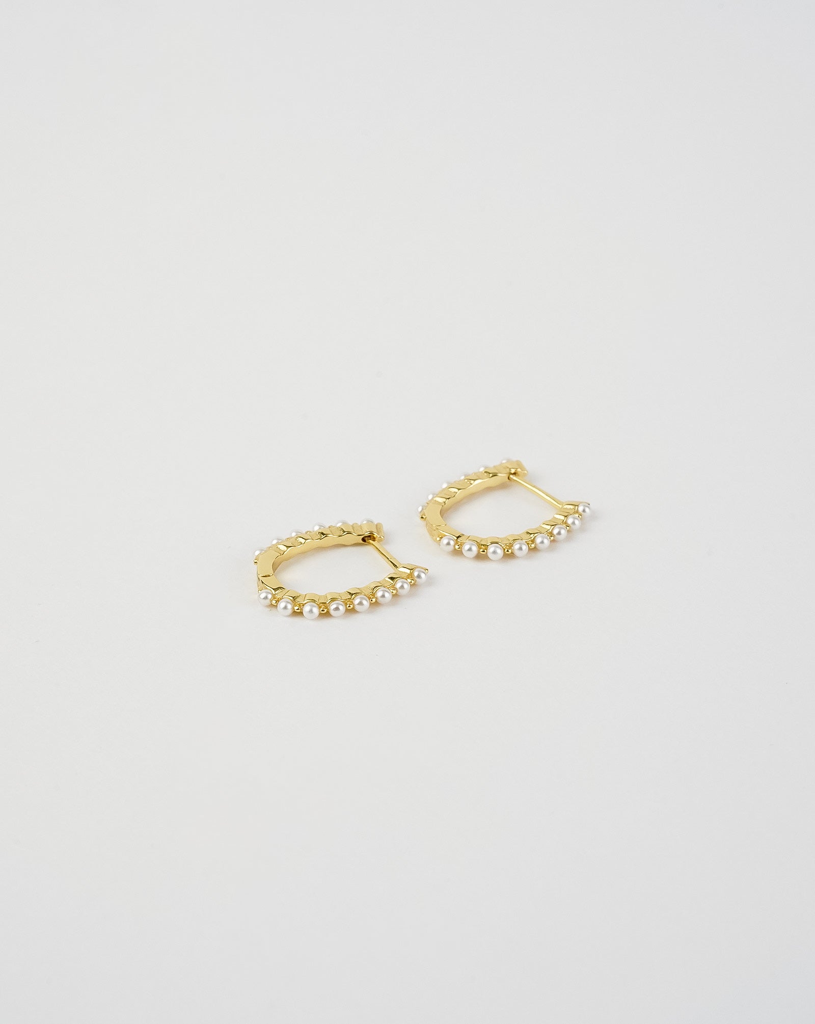 Elevate your style with our Hoop Pearl Earrings. These sophisticated earrings feature shimmering pearls delicately set within a timeless hoop design. Perfect for any occasion, they add a touch of elegance and refinement to any outfit. Upgrade your jewellery collection with our luxurious Hoop Pearl Earrings.