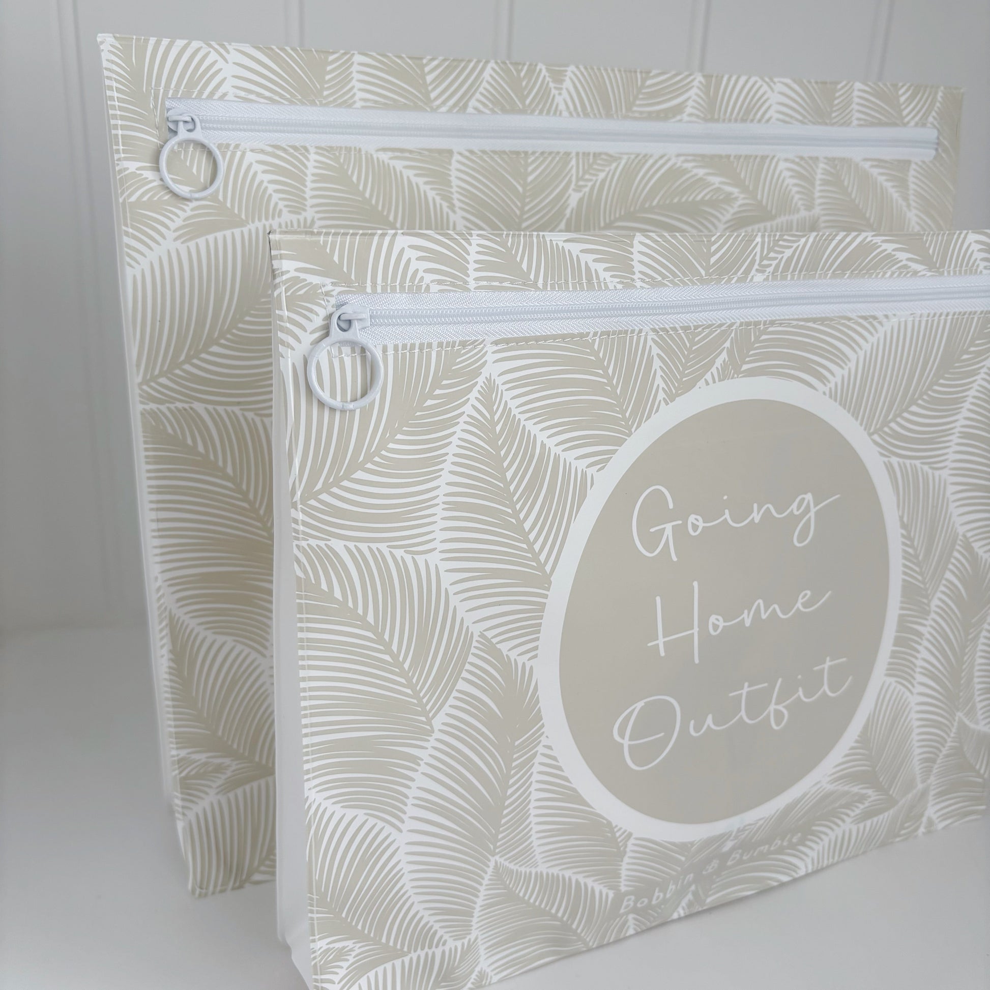 Hospital Bag Organiser Pouches - Unisex Beige Leaf Print