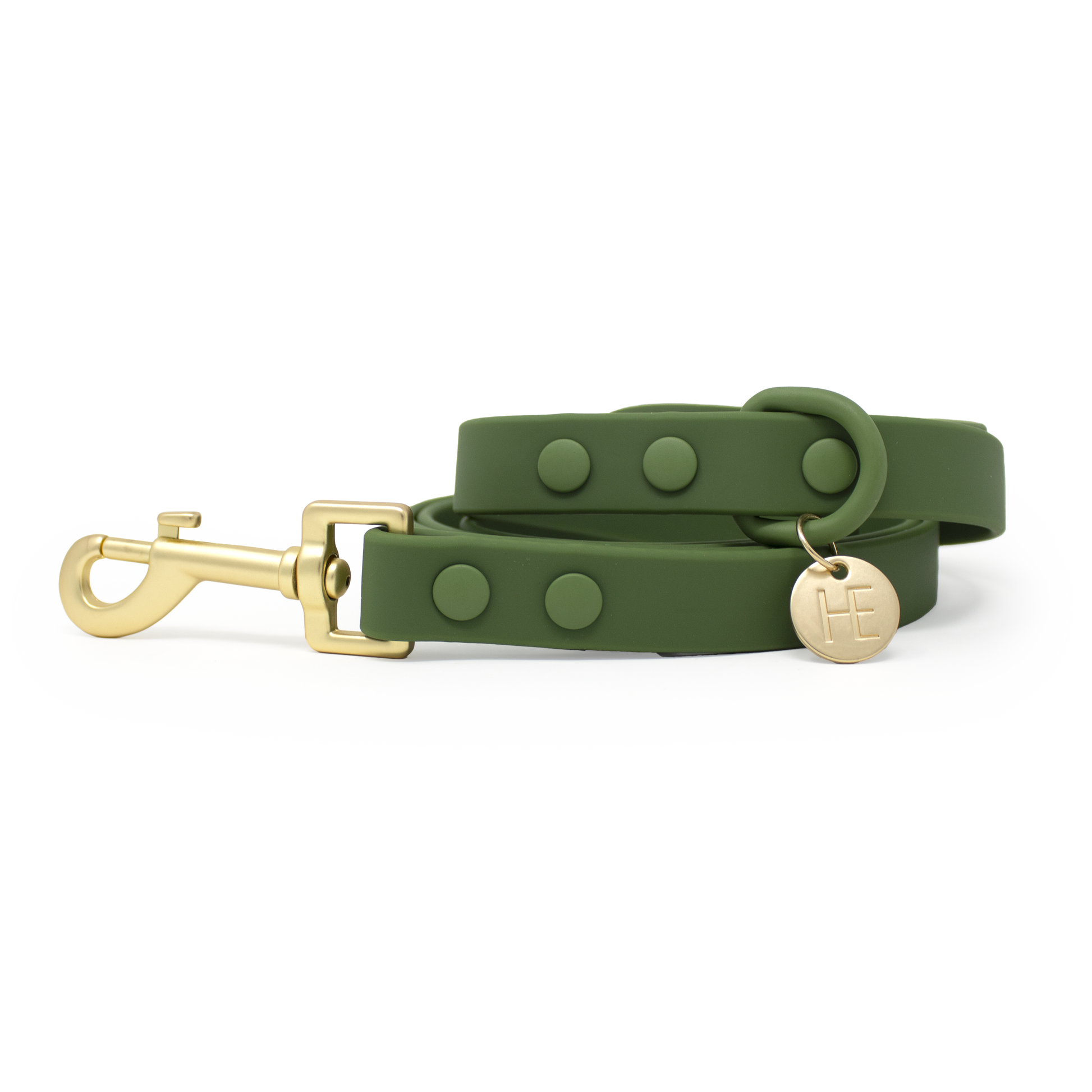 A practical fully waterproof dog collar in a soft, matte finish with complimenting Champagne gold hardware.