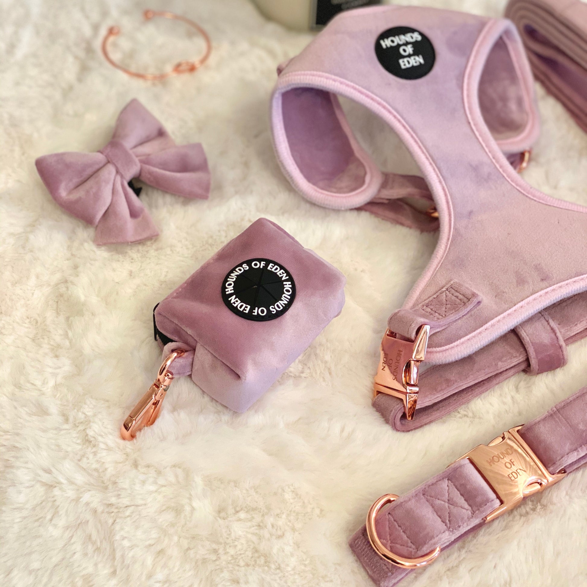 Lilac Dreams - Lilac Velvet Dog Harness with Rose Gold Metal Hardware