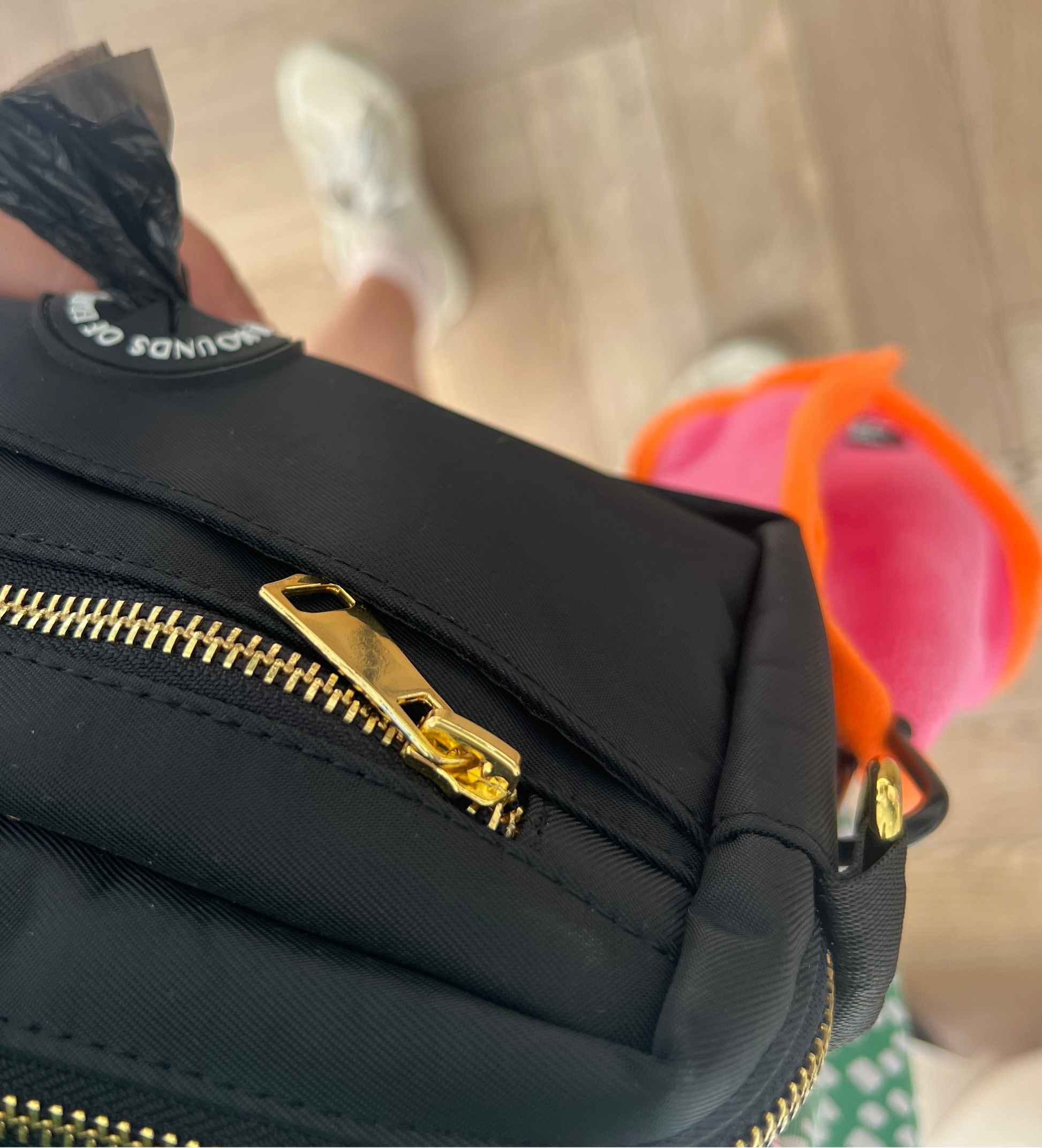 - Metal eyelet + black metal carabiner clip for ease of carrying around.