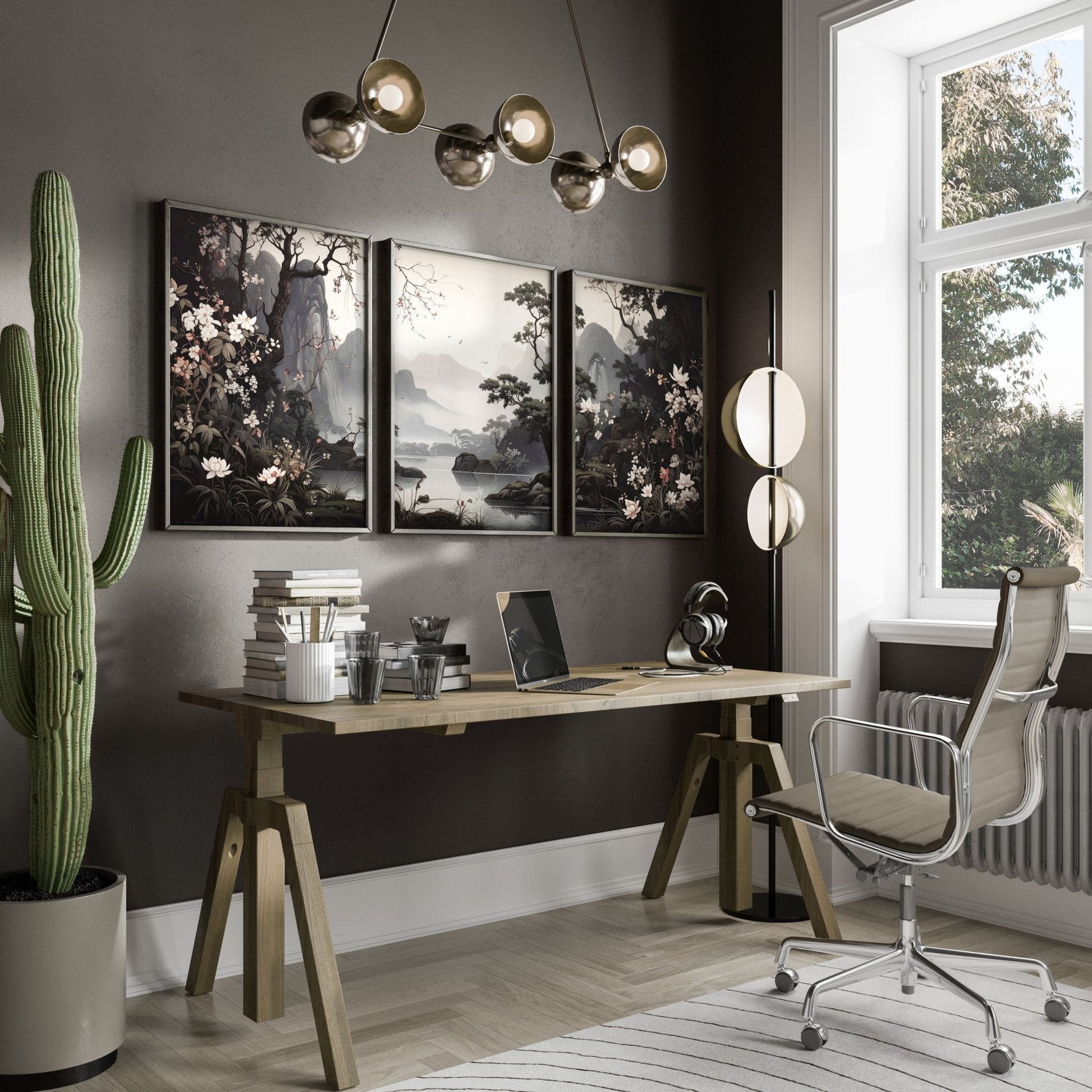 - Set of 3 Chinoiserie Wall Art Prints for office Wall Art.