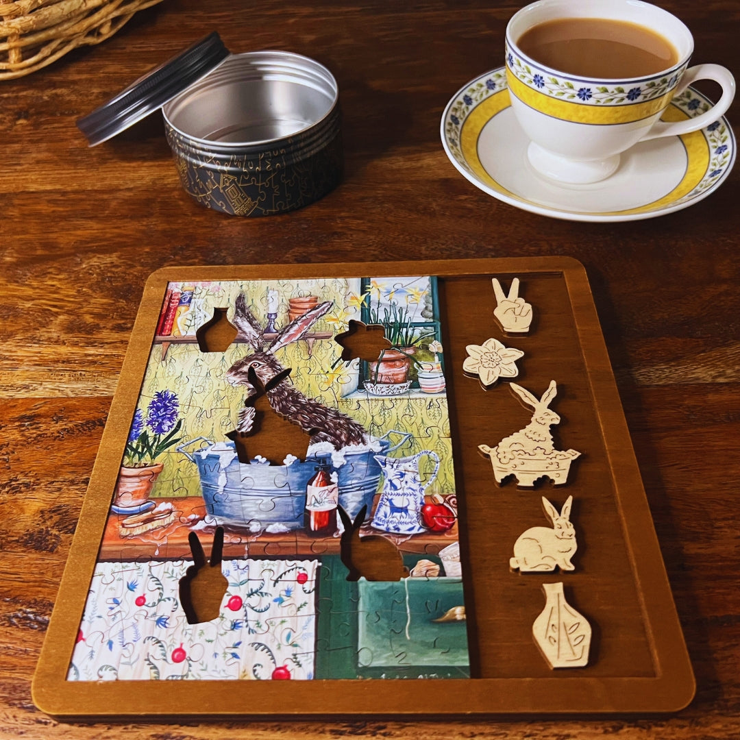 Our MINI QT puzzles are laser cut from thick, 4mm plywood and include 5 whimsies - they make a great puzzle snack!