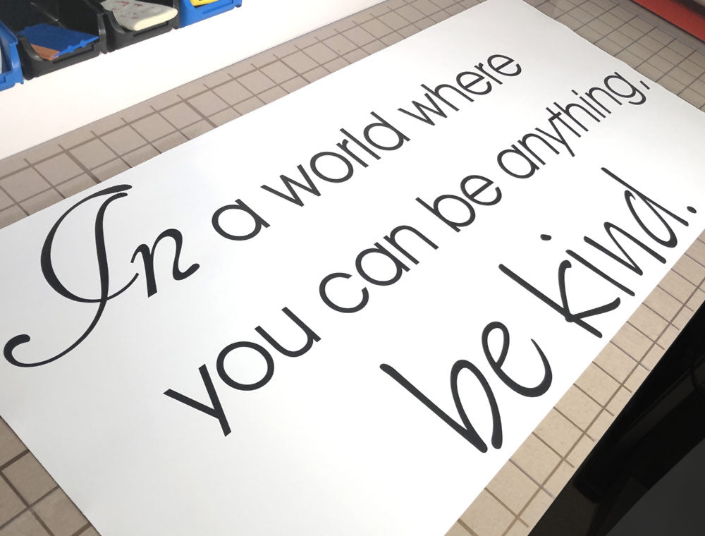 Add a daily dose of positivity and inspiration to your home or workspace with our “In a World Where You Can Be Anything, Be Kind” wall sticker.