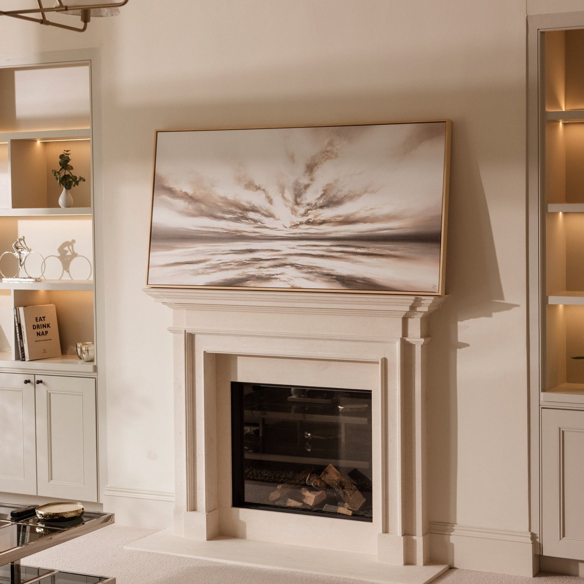 Presenting ‘Infinity’, a stunning coastal piece by The Rocks Brothers. This scene evokes a sense of peace and quiet contemplation, with nature’s vastness unfolding. With a neutral colour palette of beige, greys, browns and whites, this masterpiece embodies style and sophistication.