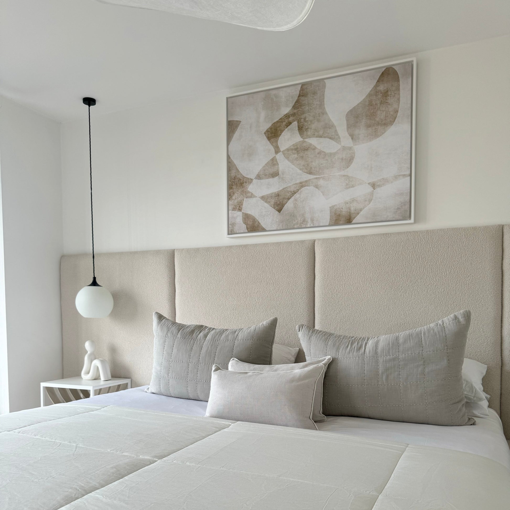 Introducing "Instrumental" – an elegant abstract masterpiece inspired by mid-century modern aesthetics. Composed of neutral beige tones, this captivating piece features free-flowing fluid abstract forms that evoke a sense of timeless sophistication.