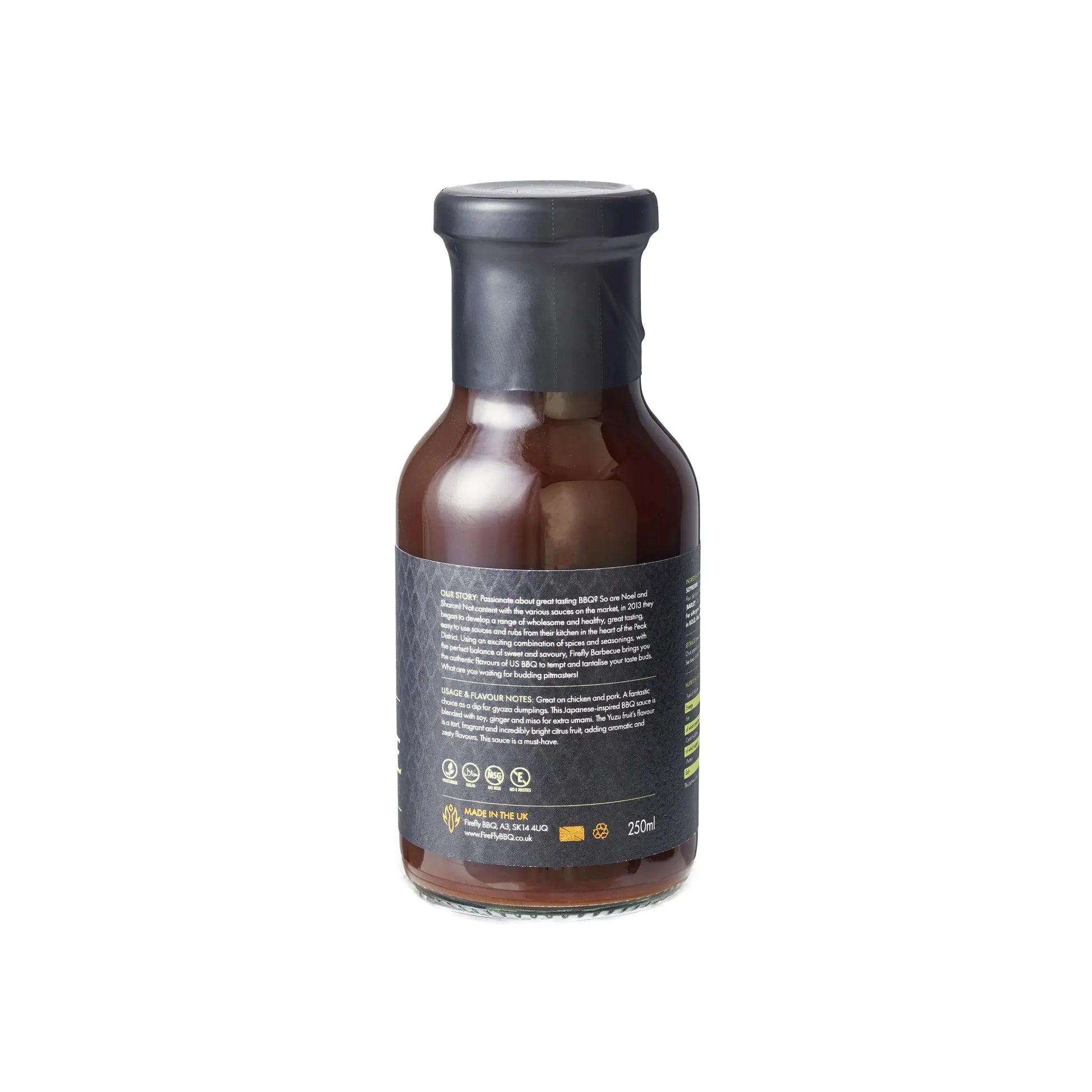 Ingredients: Brown Sugar, Cane Sugar, Spirit Vinegar, Apple, Tomato, Soy Sauce (SOY, WHEAT), Honey, Ginger, Sea Salt, Miso (SOY), Garlic, Onion, Natural Yuzu Flavour, Kashmiri Chilli, Star Anise.