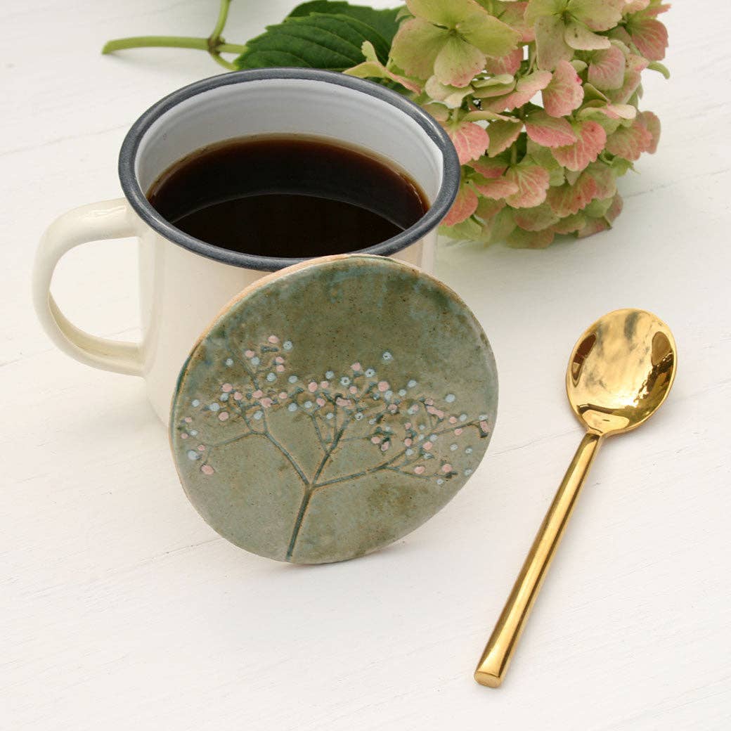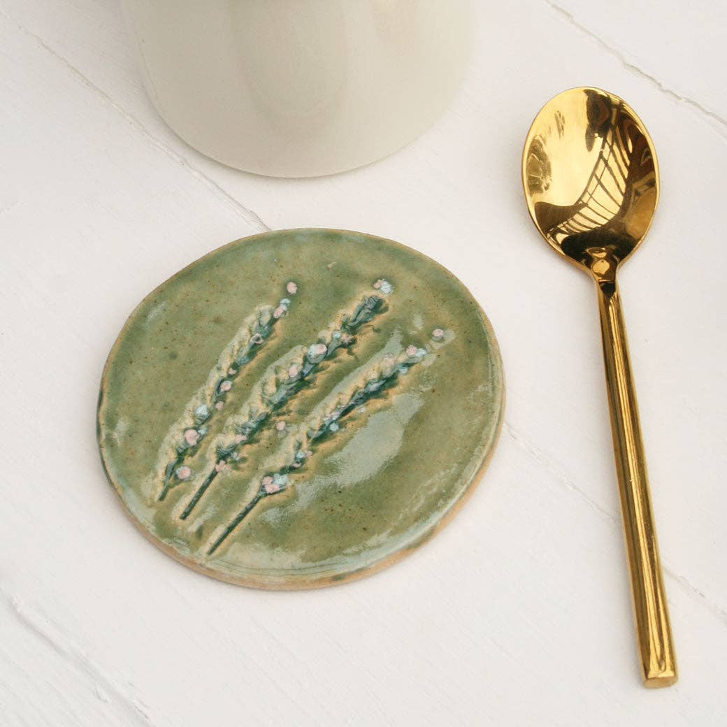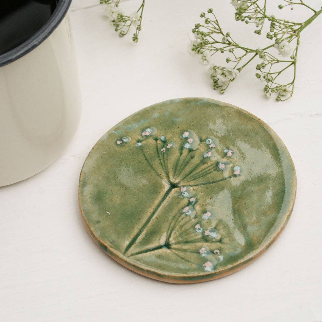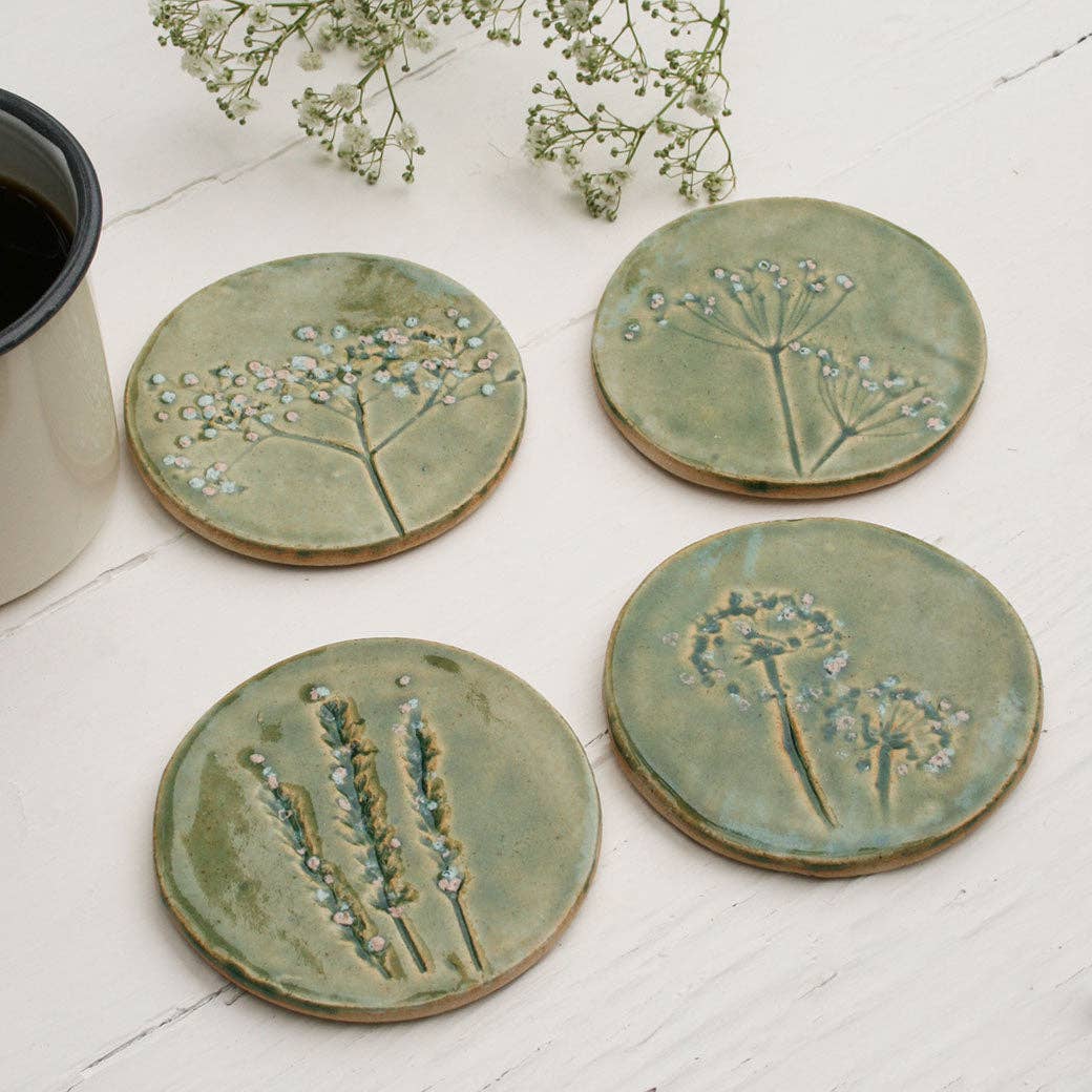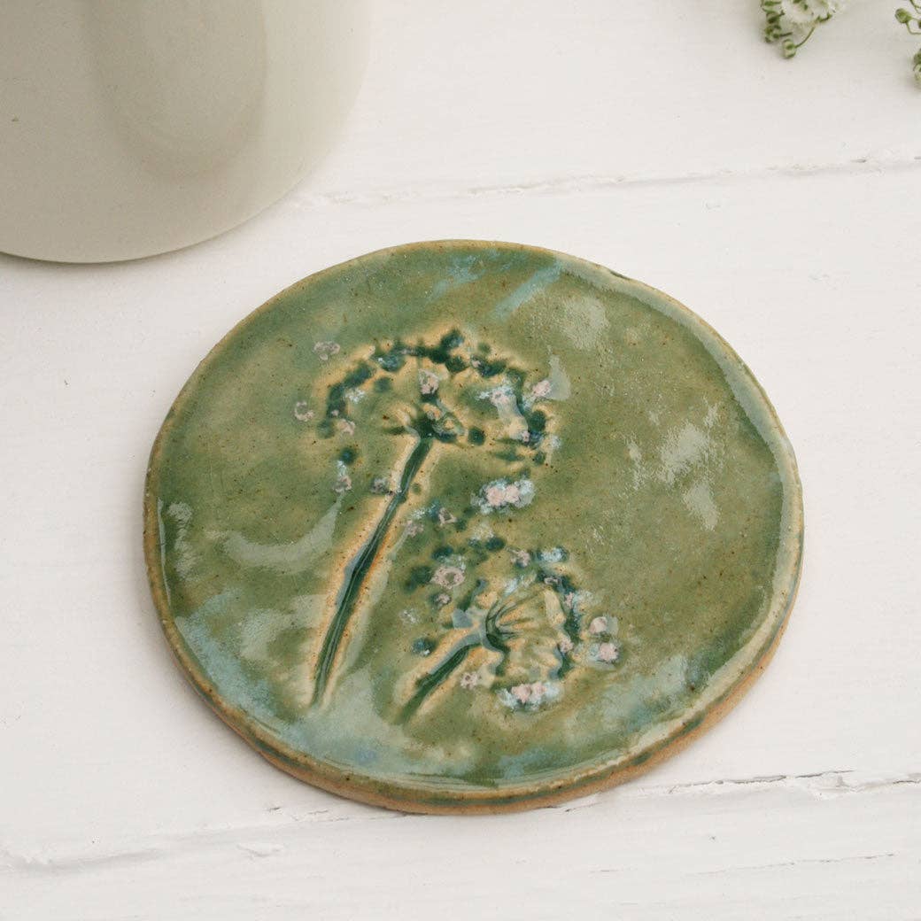 ⭐ Beautiful and totally unique green ceramic coasters, made by pressing wild flowers into clay.⭐