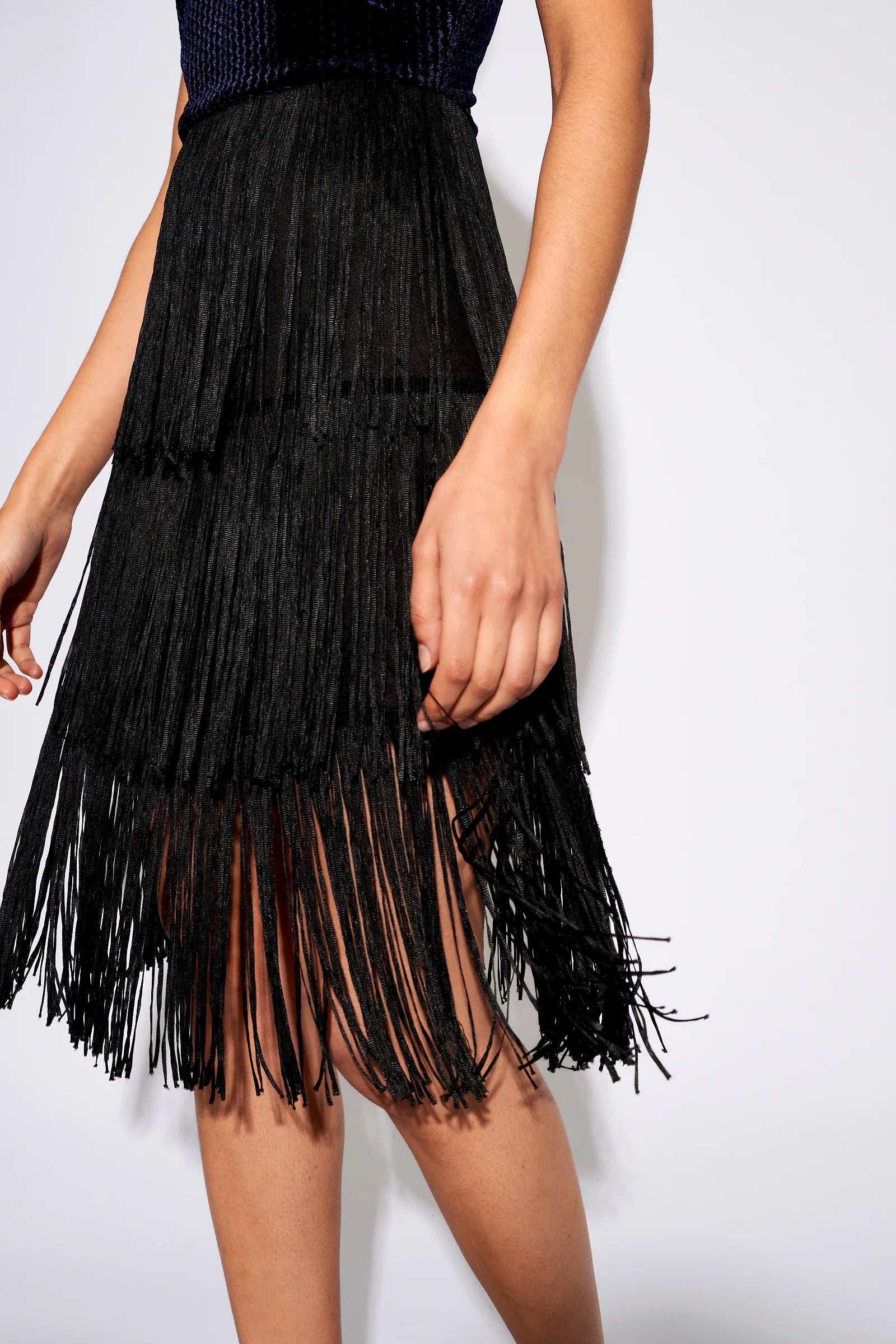 Karene Fringe Skirt Velvet Mini Dress in Navy