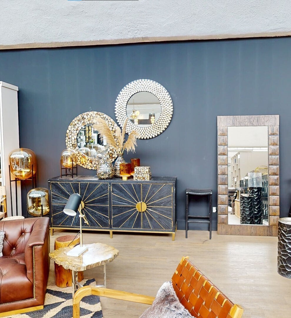 The Kendari barstool is crafted from solid teak wood in a black finish. The design highlights a gently curved seat made from smooth black leather, providing comfort. The sturdy frame includes horizontal bars for a convenient footrest. This piece's understated elegance makes it a perfect fit for a modern kitchen or sophisticated bar area.