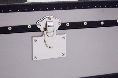 - Colour: black and white cowhide with black leather trim and steel clasps