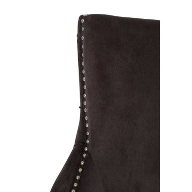 The Kensington Townhouse Brown Velvet Dining Chair offers rich tone and tailored detail for elevated dining. Upholstered in plush brown velvet, it showcases a curved backrest with deep button tufting and a subtle stud trim that frames the silhouette.