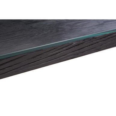 - Black wood top protected by a clear glass layer for easy wipe-clean care