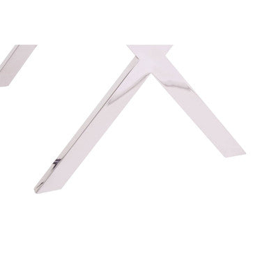 Below, a mirrored-silver stainless-steel X-base adds sculptural interest and dependable stability, making this natural top side table with cross base a standout for living rooms, bedrooms, and entryways.