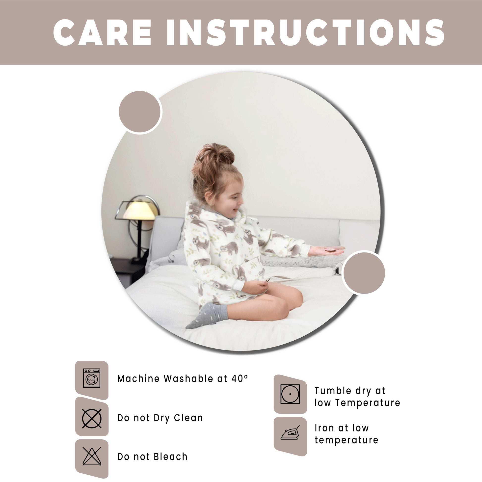 Caring for this hoodie blanket is simple and straightforward: you can hand wash or machine wash it in cold water on a gentle cycle to preserve its softness and vibrant print. Tumble dry on low heat or air dry to maintain its shape and fluffiness, ensuring it retains its quality even after multiple washes for long-term enjoyment.