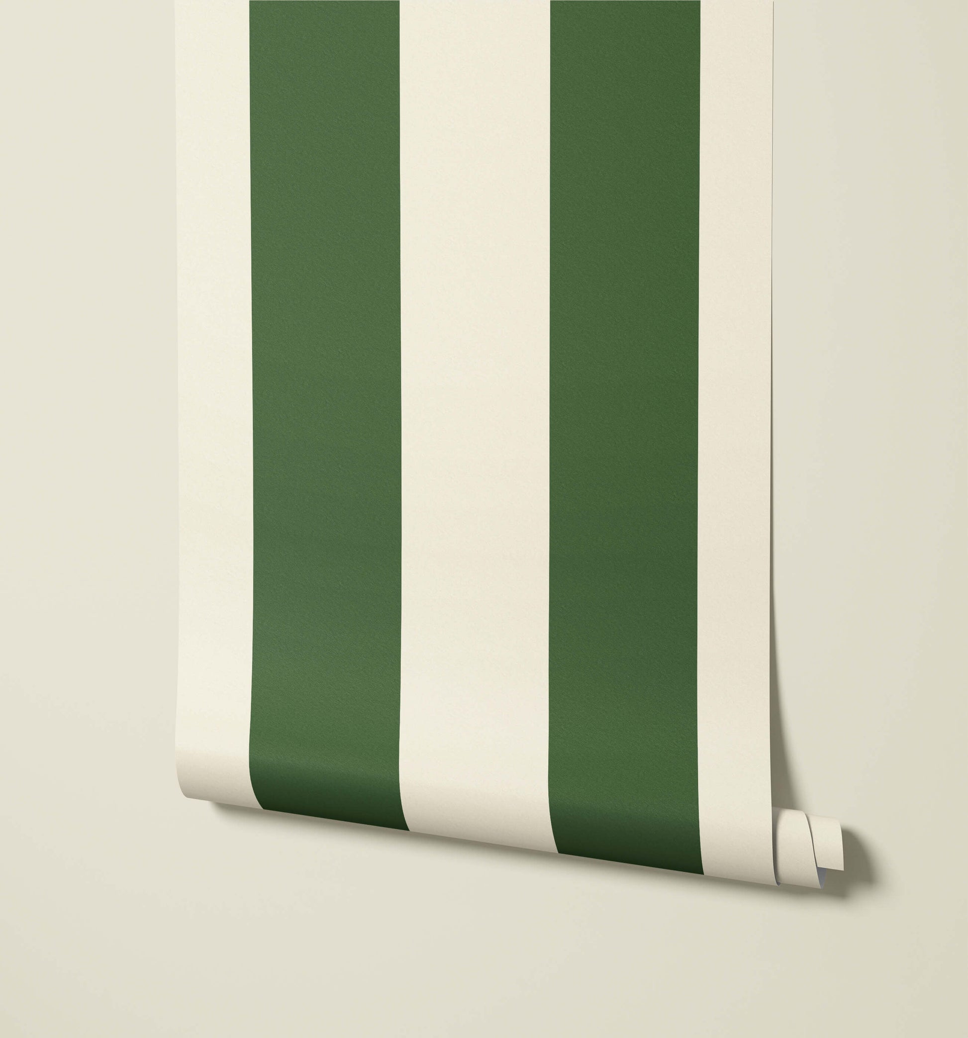 The regency stripe wallpaper makes an immediate and powerful visual statement with its wide, classic vertical bands. The design features evenly proportioned, alternating columns of solid, contrasting tones that extend without interruption across the wall surface. This traditional structure is renowned for its ability to dramatically enhance the perceived height and architectural formality of any space.